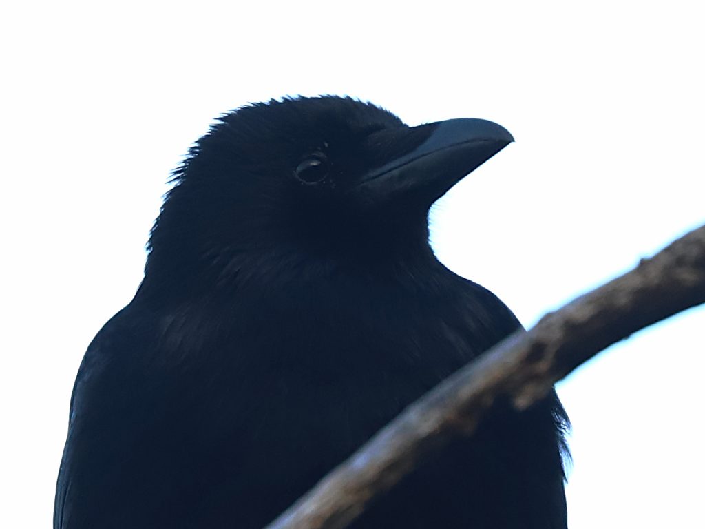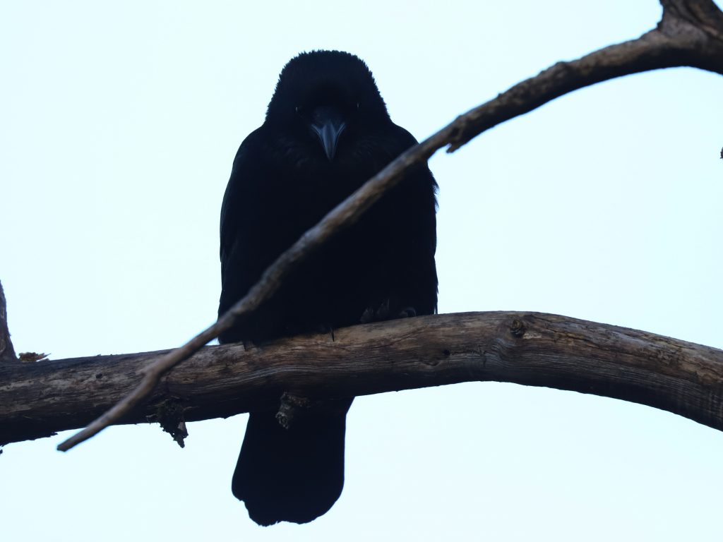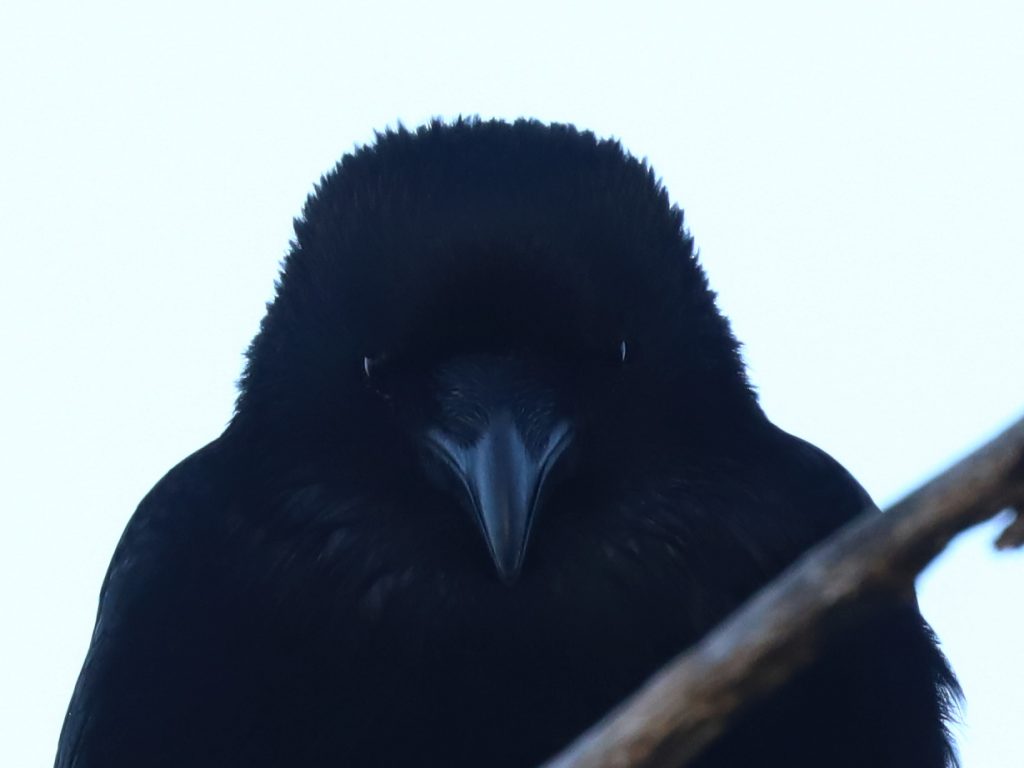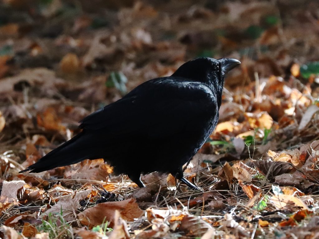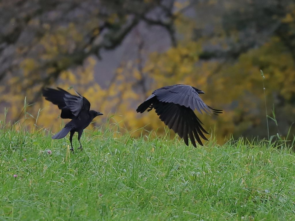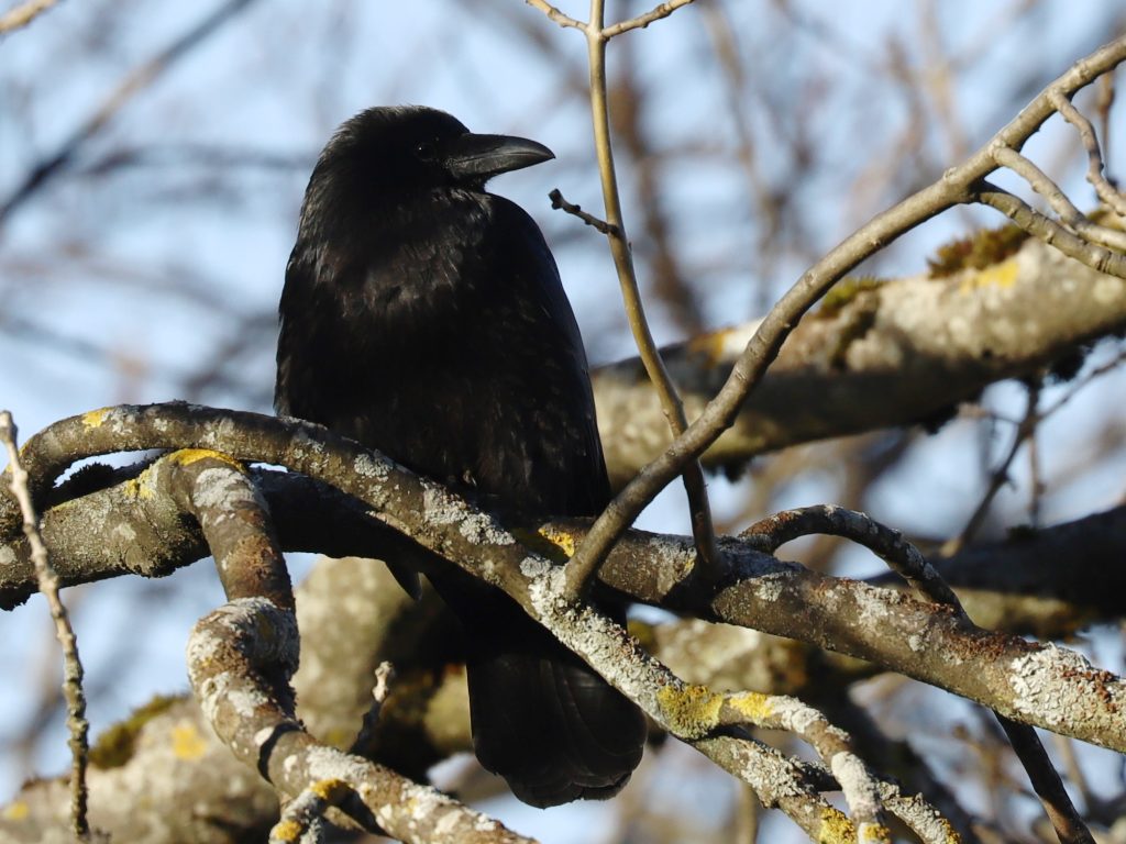 A force de croiser la bande locale de Corneilles noires Corvus corone à chacune de mes sorties dans les prés de Lugrin, les oiseaux sont-ils devenus moins méfiants à mon égard ? J’ai pu en approcher un en tout cas qui semblait plus curieux qu’inquiet.