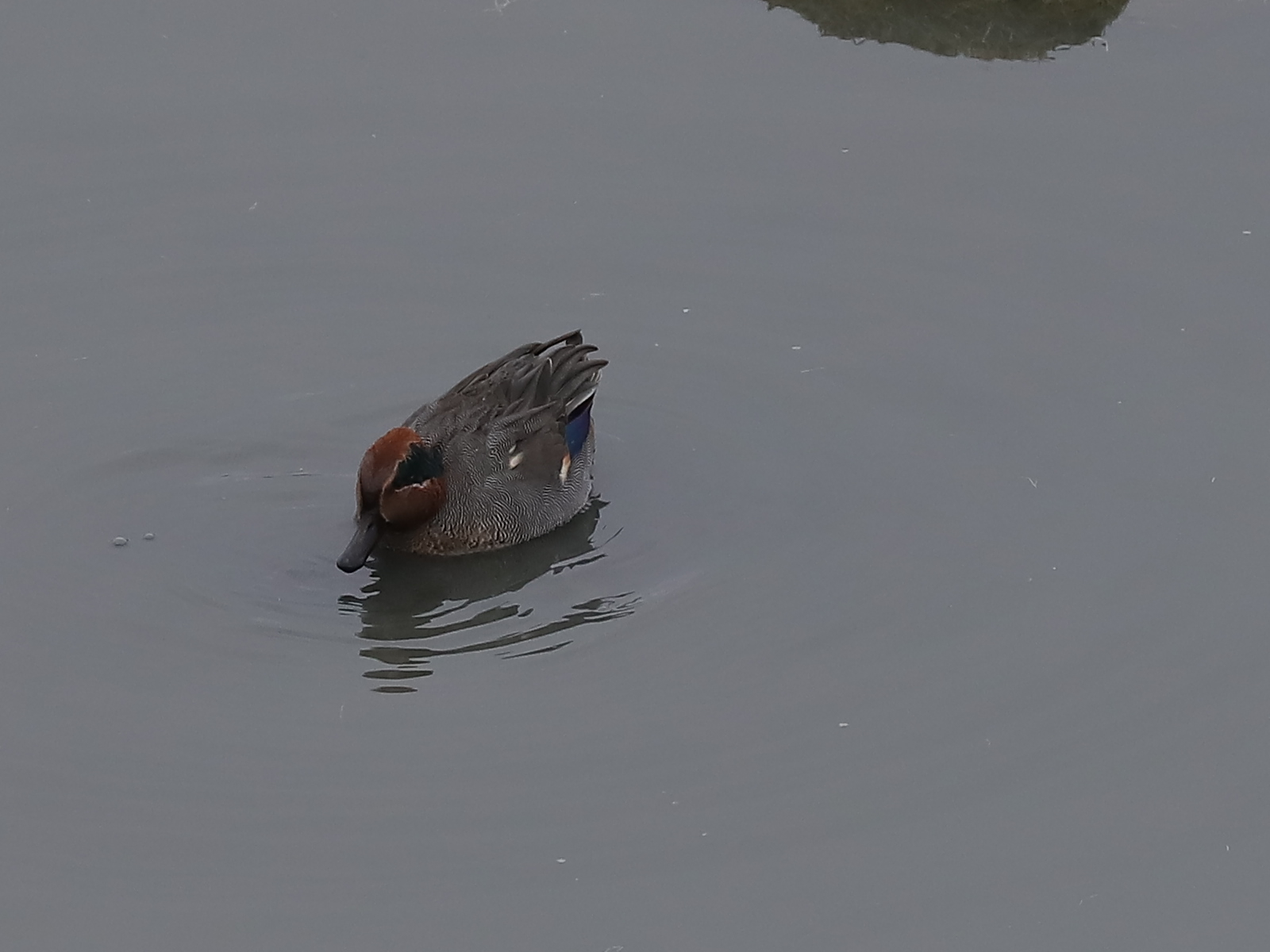 Alors vous noterez que celui-ci est différent : calotte rouge, ventre strié de brun.