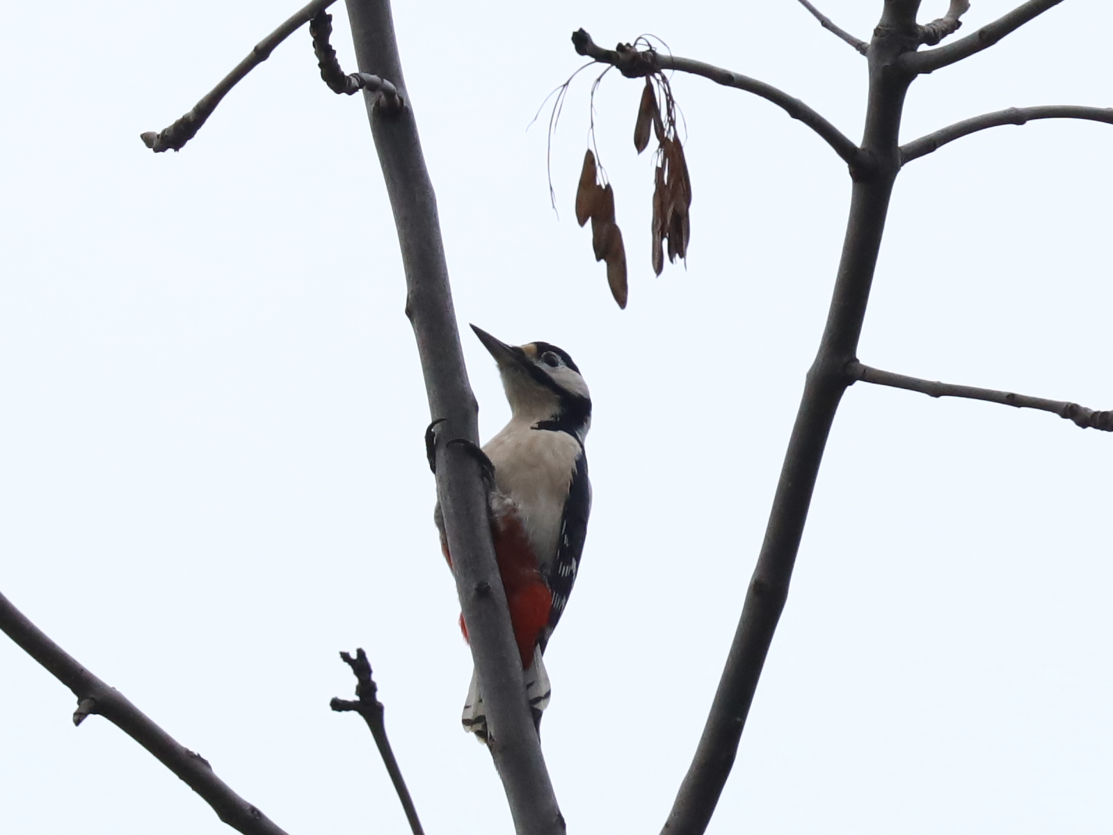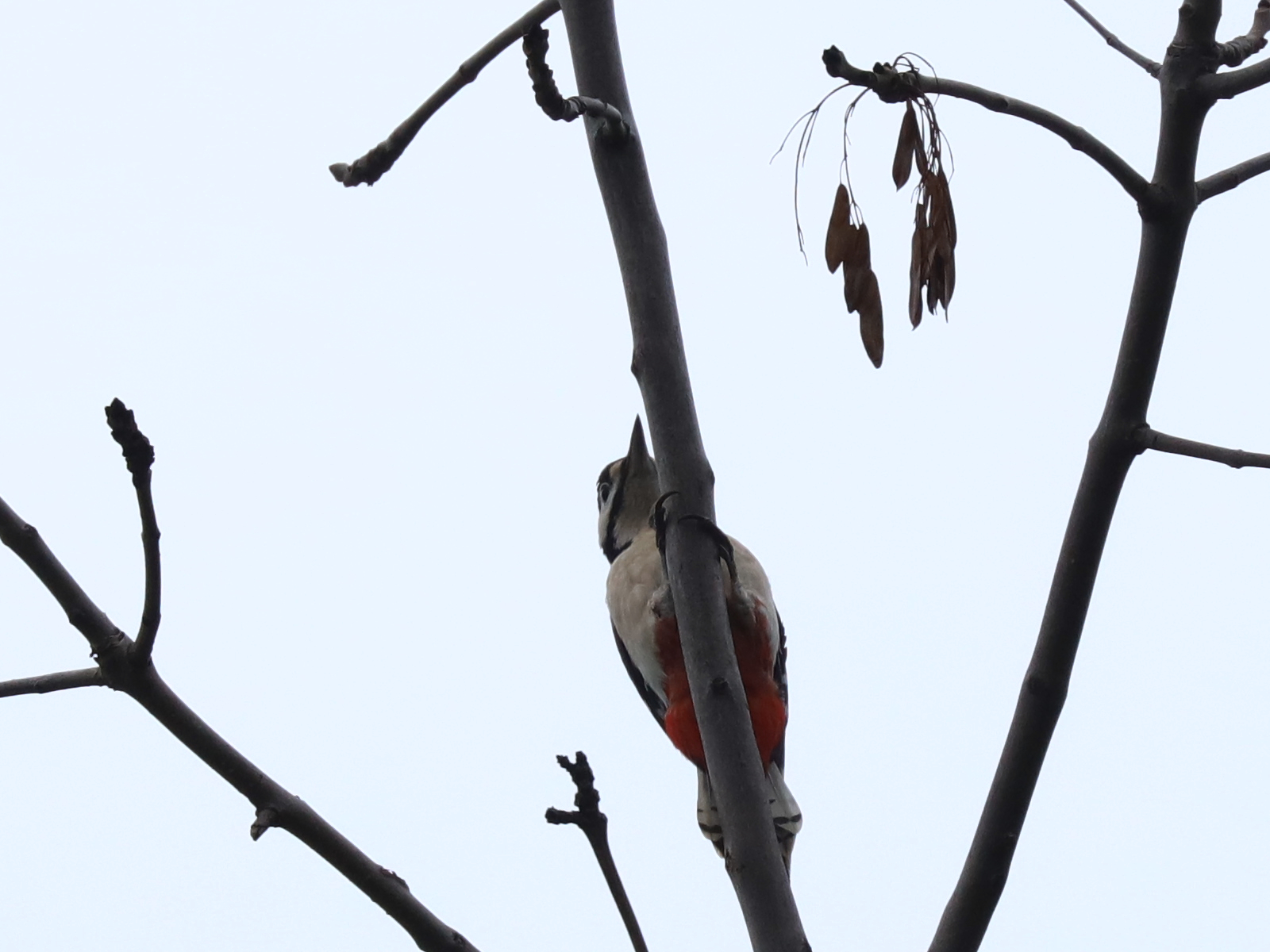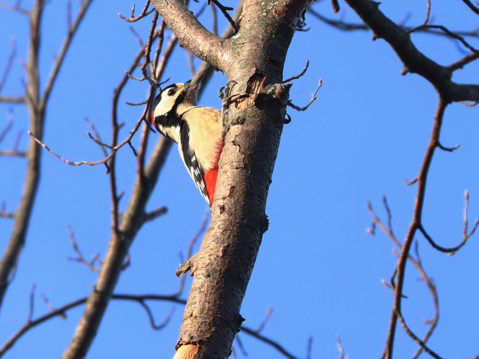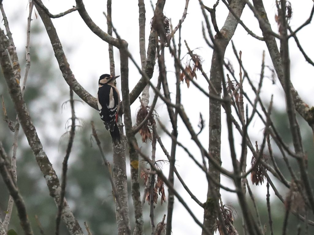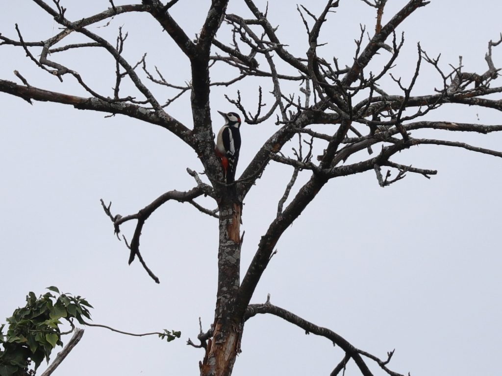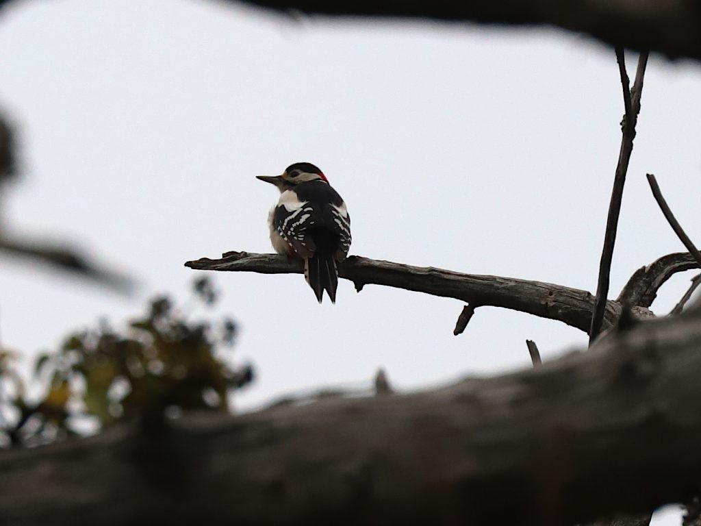 Vous connaissez bien le Pic épeiche Dendrocopos major, avec sa tête noire et blanche, son poitrail blanc et le croupion rouge.