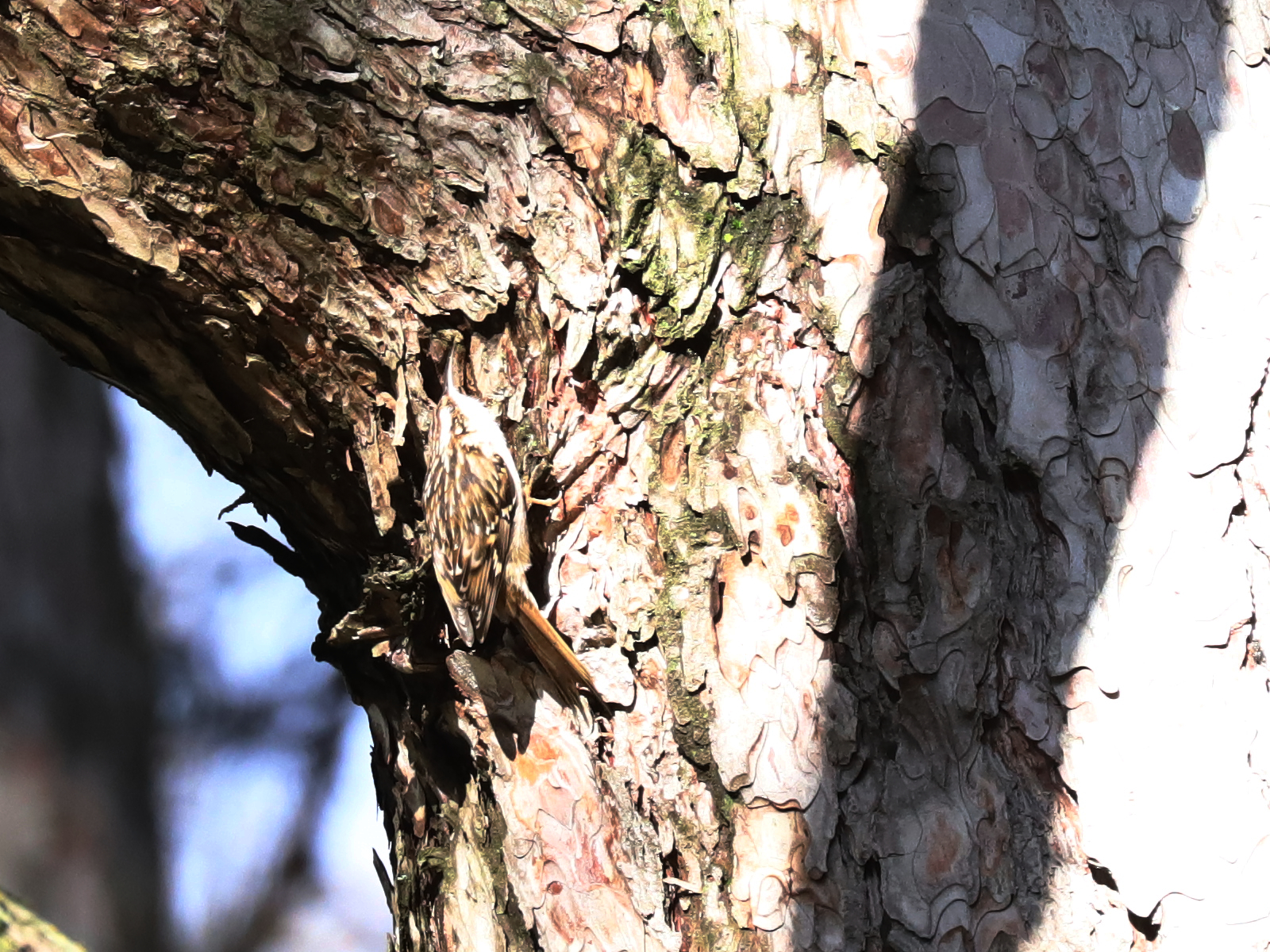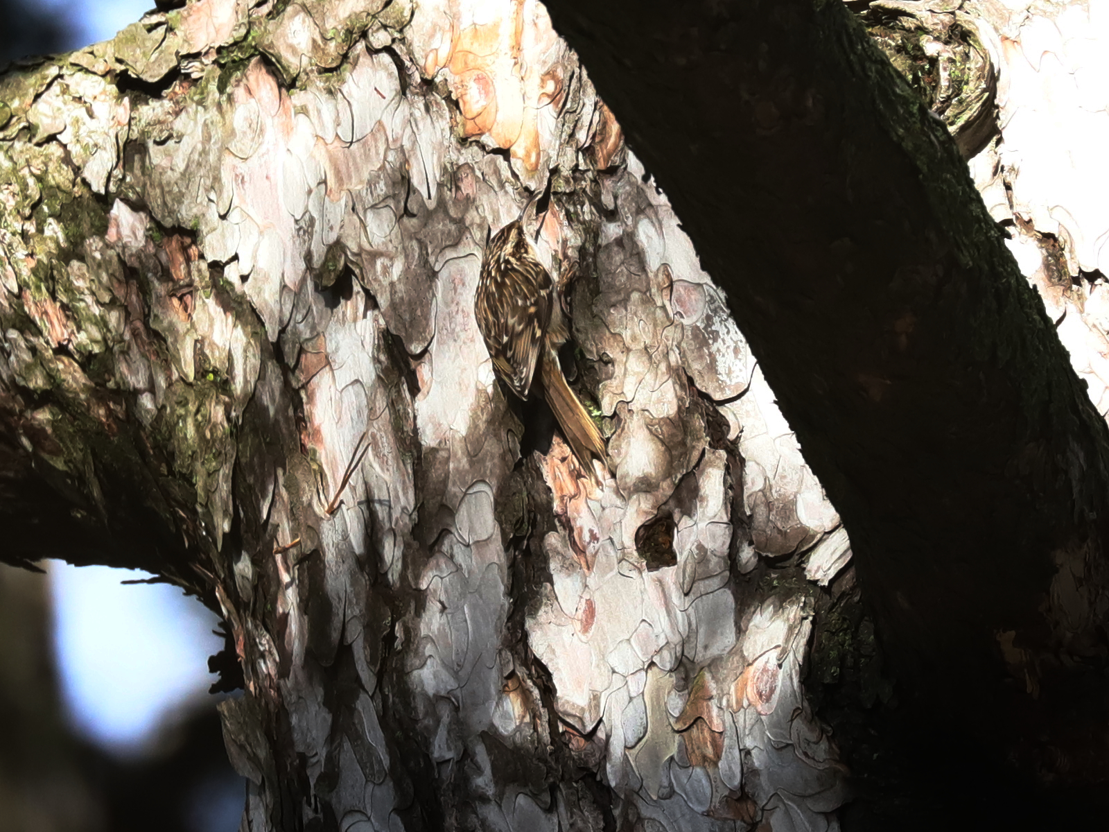 Même si celui-ci est pris de plus près, établir la différence entre Grimpereau des jardins Certhia brachydactyla et Grimpereau des bois Certhia familiaris reste ardu.