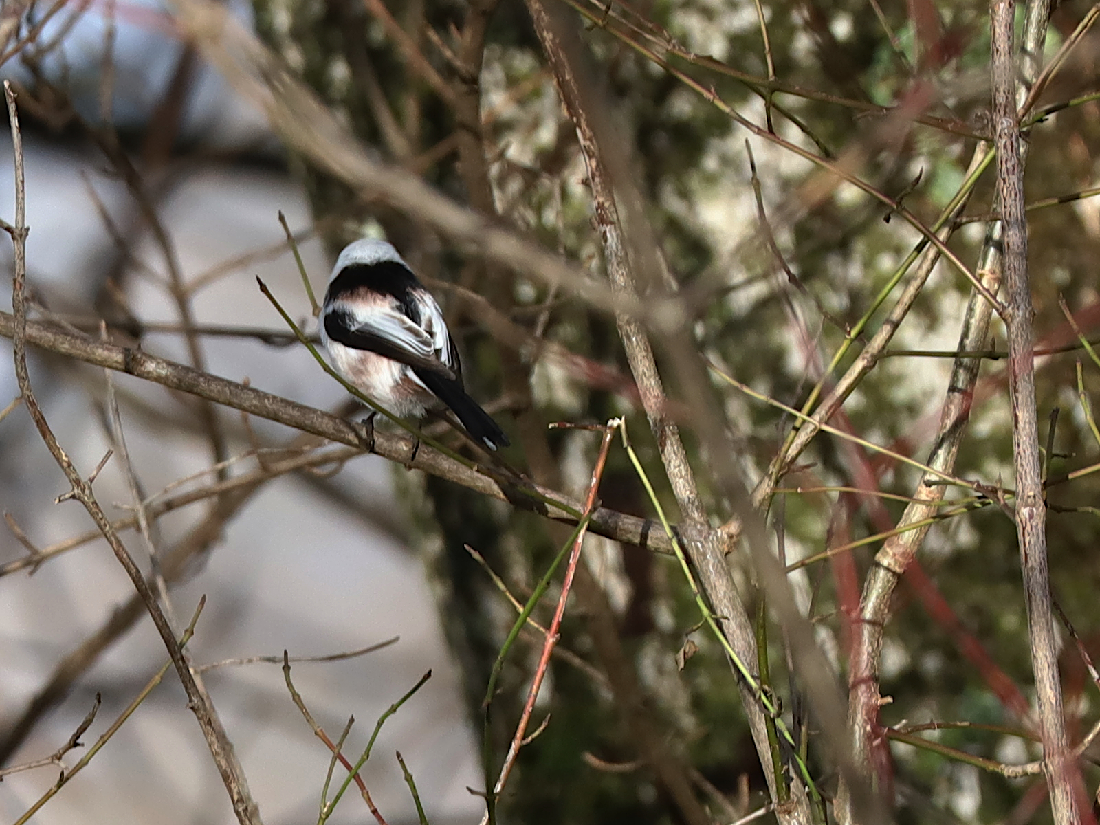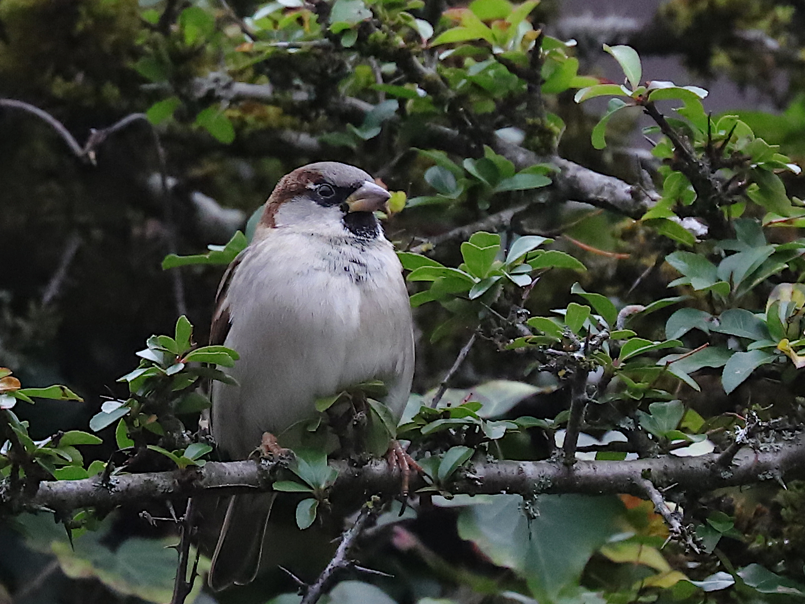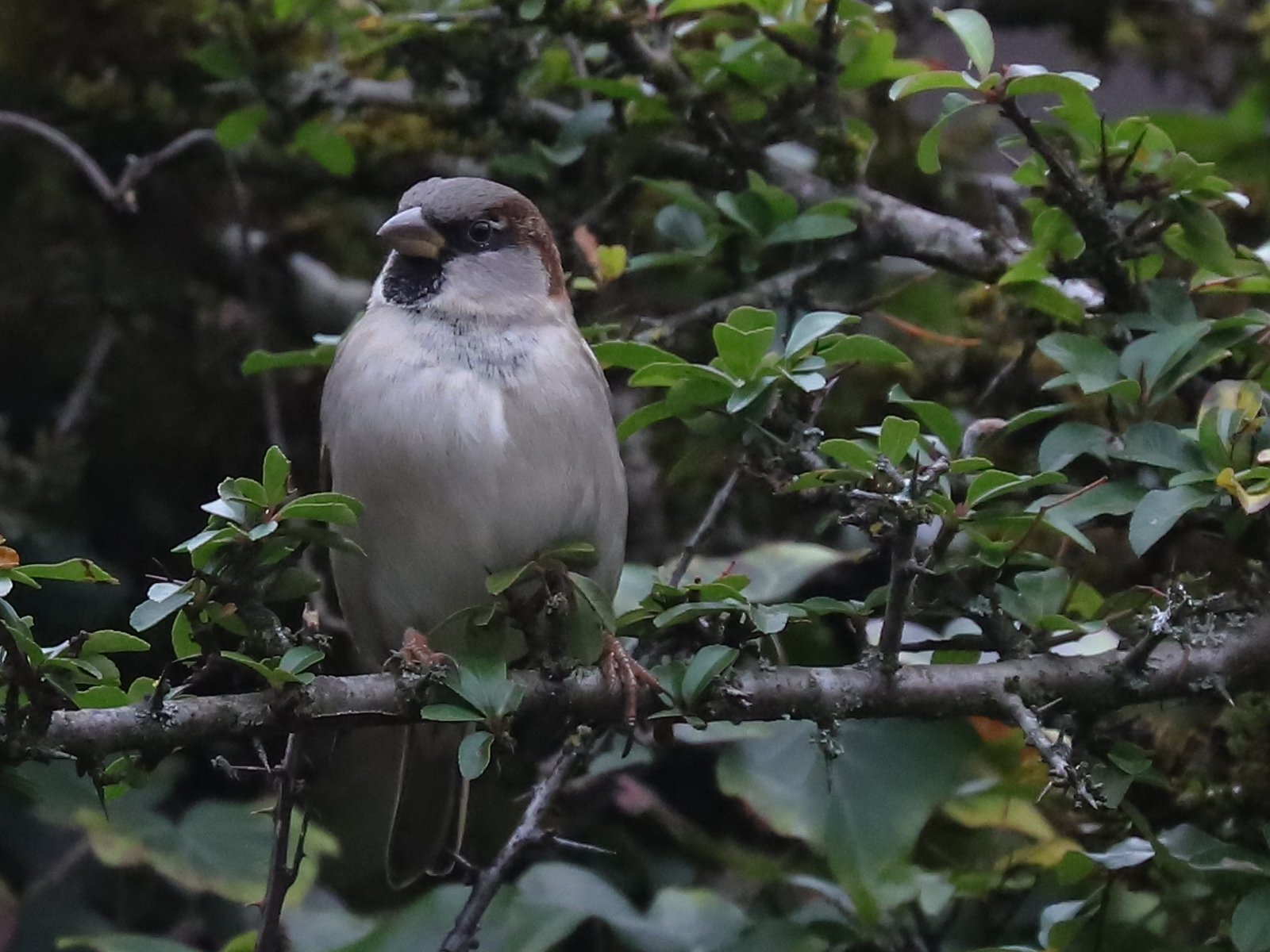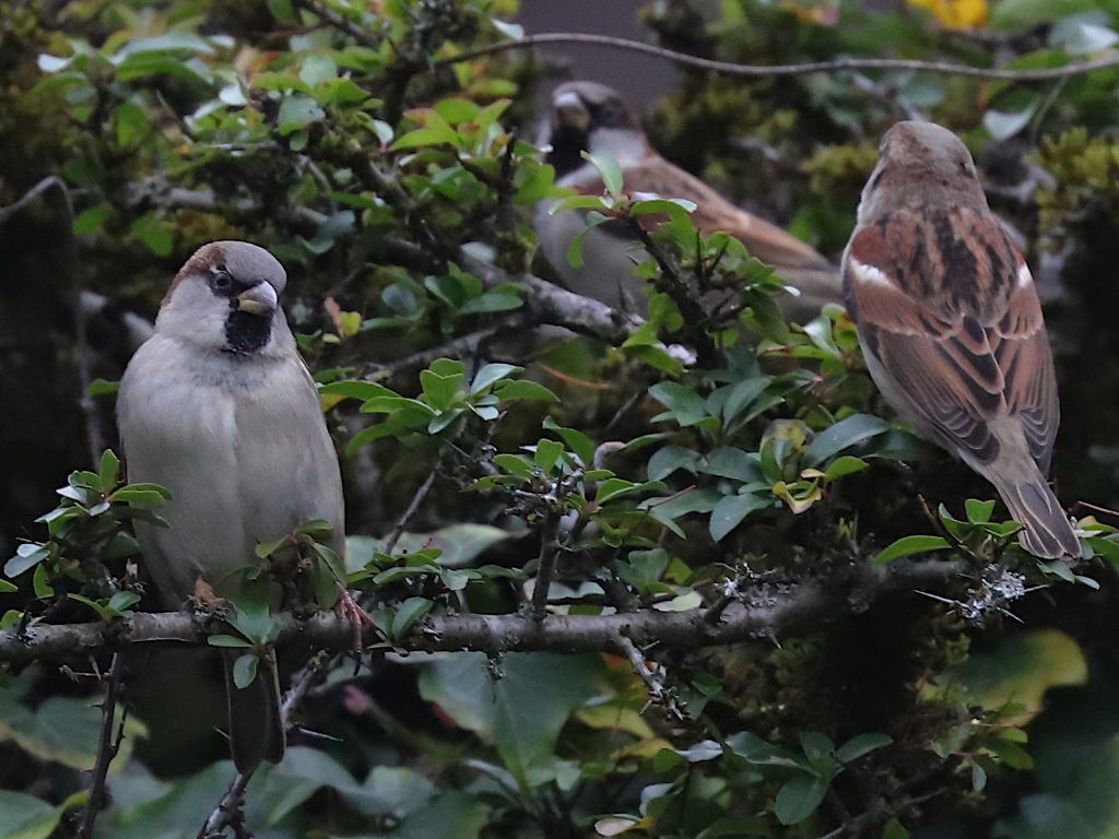 Ce Moineau Passer domesticus a beau être qualifié de domestique, ses représentants lugrinois sont farouches et s’envolent à la moindre tentative d’approche de ma part. Aucune ressemblance de comportement avec ceux qui fréquentent les terrasses de cafés, bien que ce soit la même espèce.