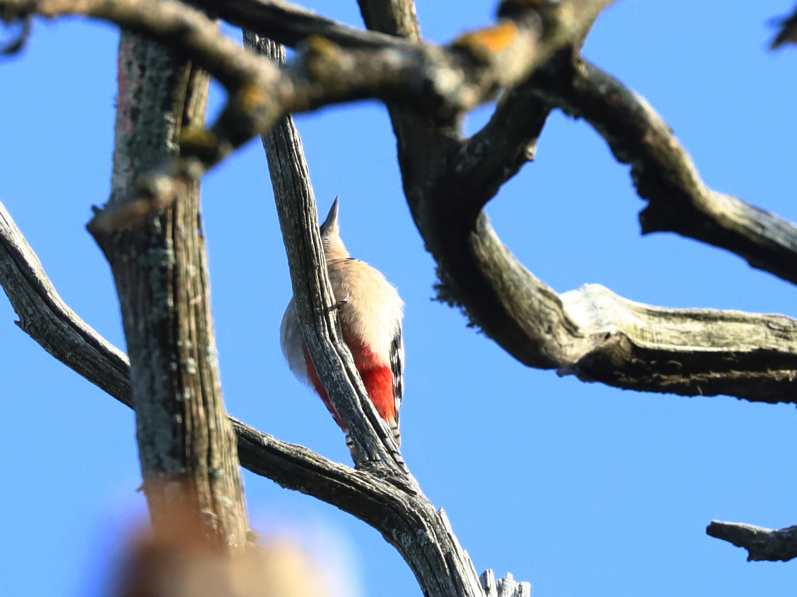Il s’agit du Pic mar Dendrocoptes medius, que je photographie à Lugrin pour la première fois.