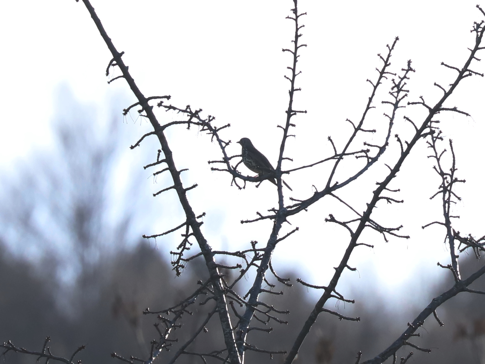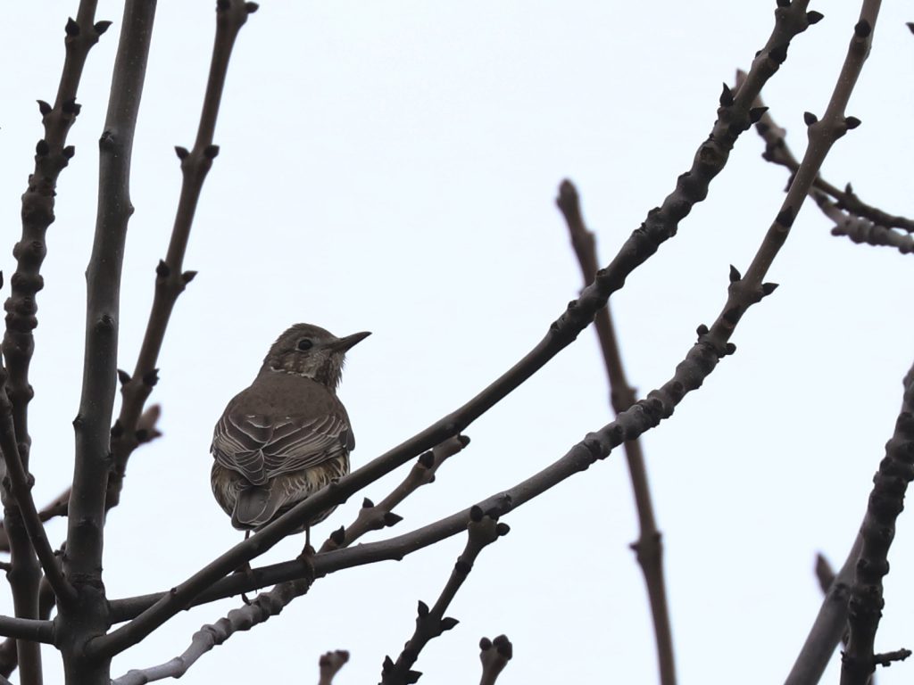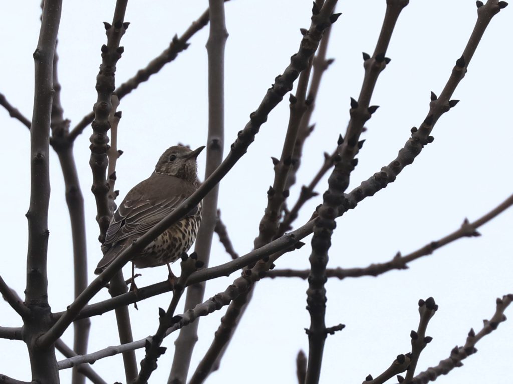 Pas facile non plus d’approcher les Grives draines Turdus viscivorus, souvent perchées sur un point d’observation, prètes à s’envoler.