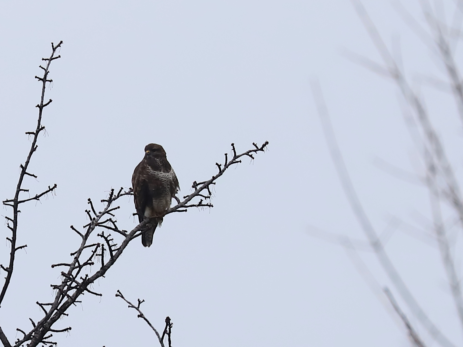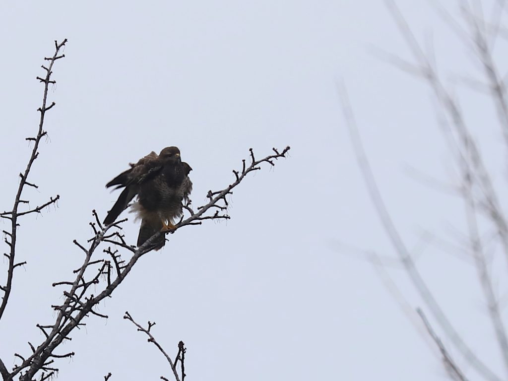 La Buse variable Buteo buteo de la semaine, en train de se chauffer les ailes par un maigre soleil.
