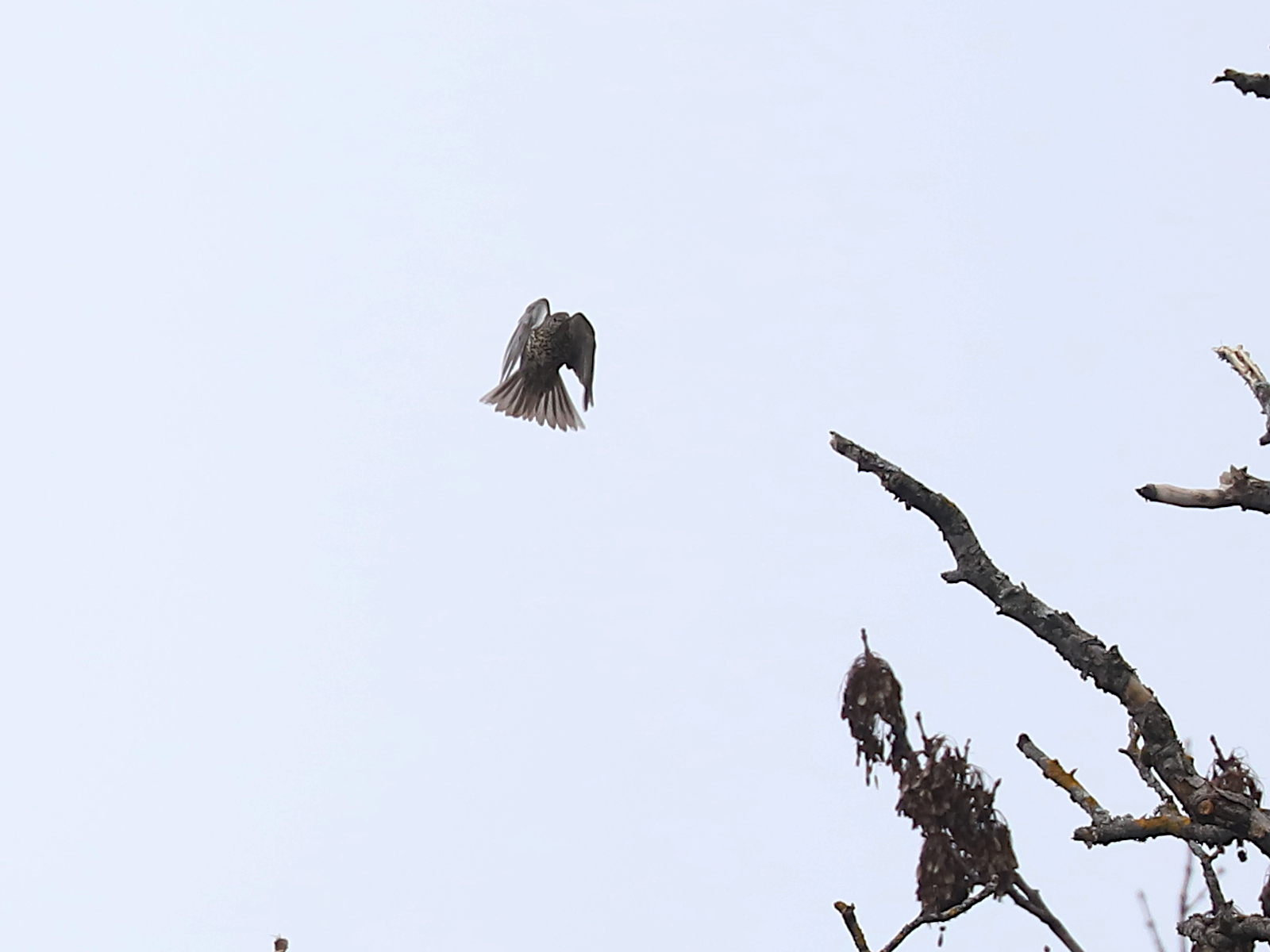 Je me suis trouvé aux premières loges lors d’une attaque d’un Epervier d’Europe Accipiter nisus sur un groupe de merles mais c’est d’une telle rapidité que je n’ai pu prendre l’oiseau que quand il s’est posé, bredouille.