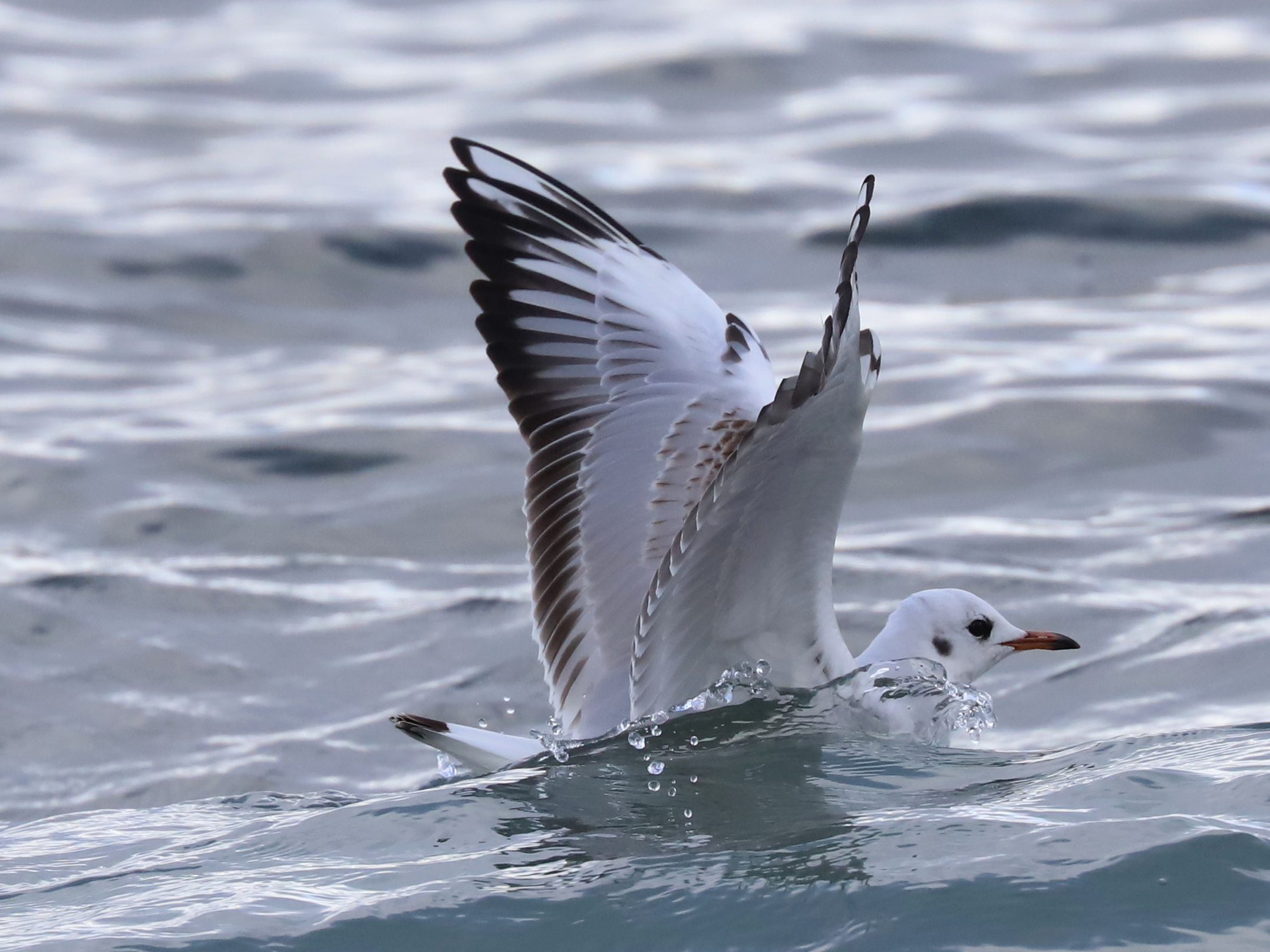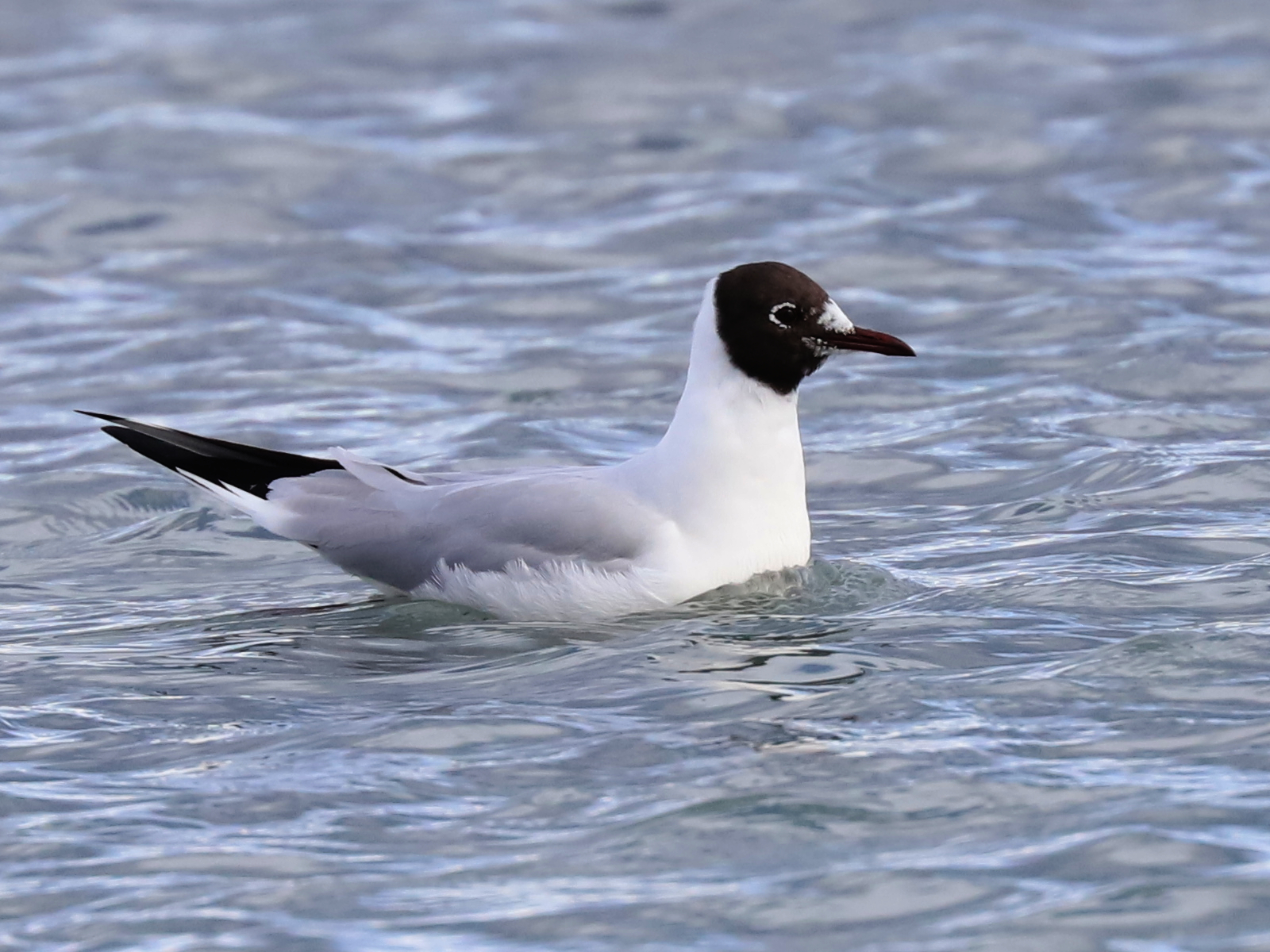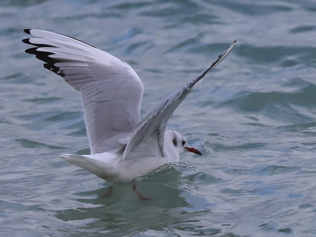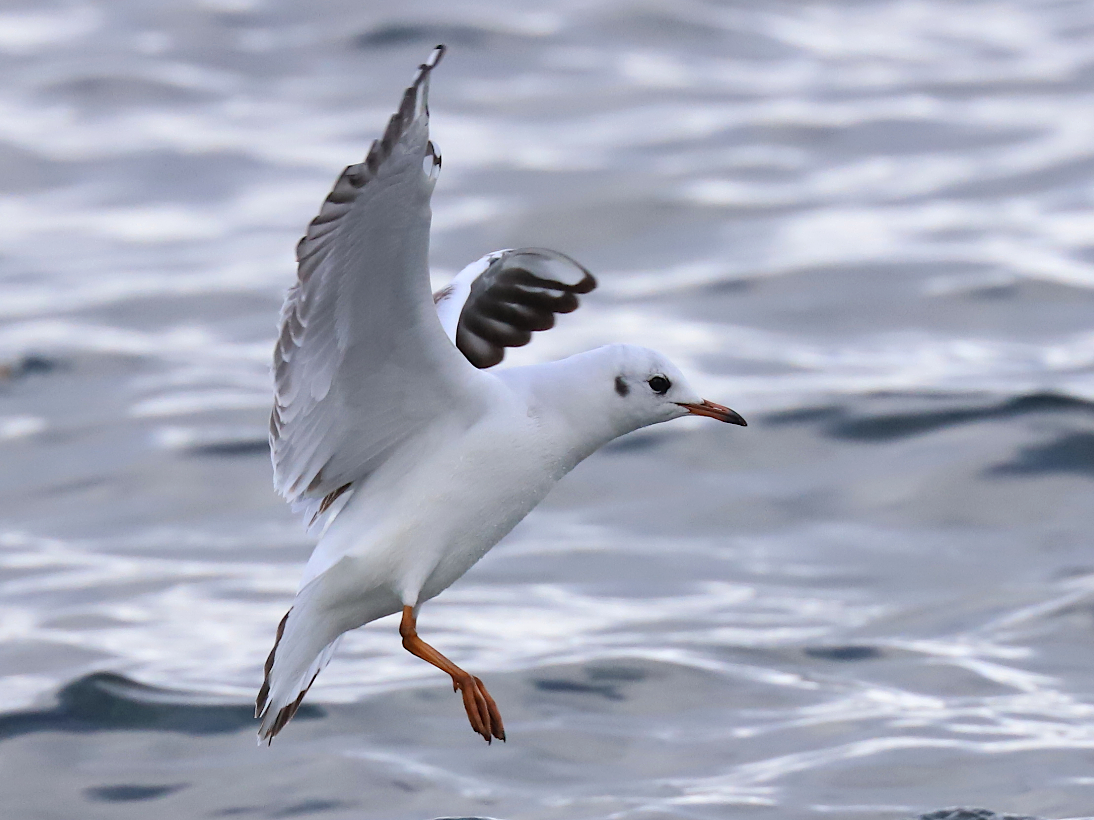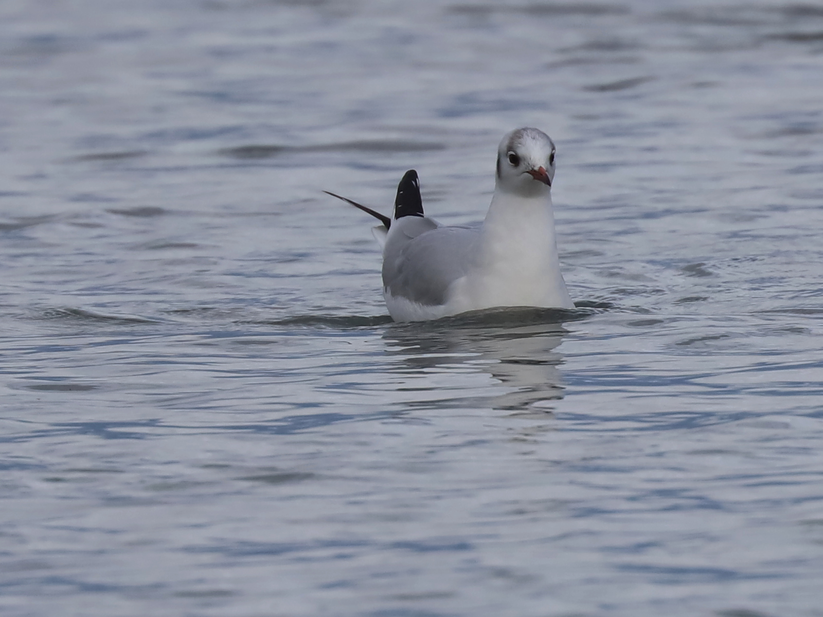 Gros plans sur une Mouette rieuse Chroicocephalus ridibundus, en plumage internuptial. Elle reprendra sa tête brun-chocolat au printemps.