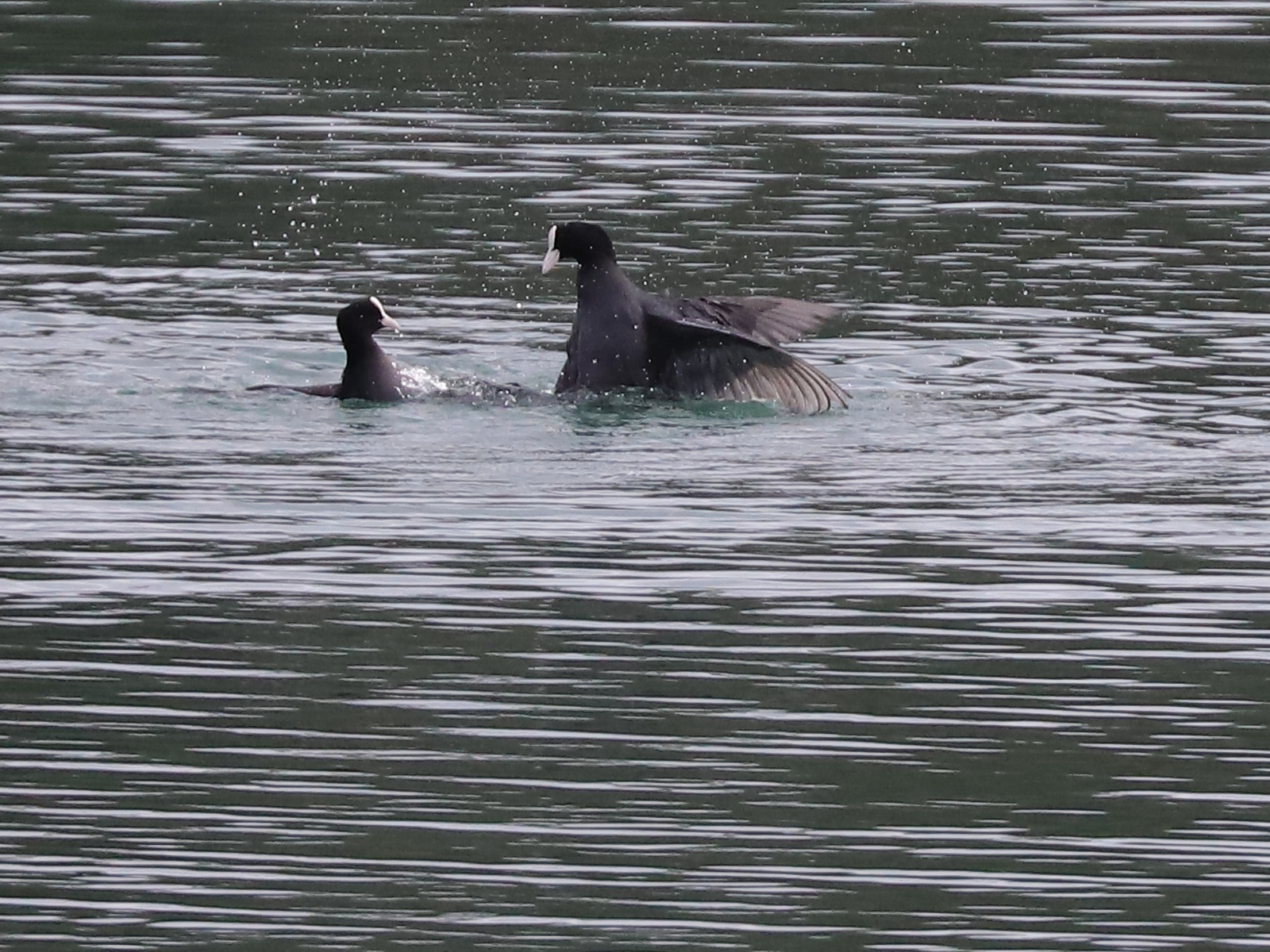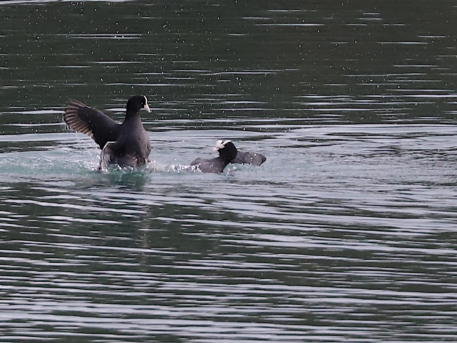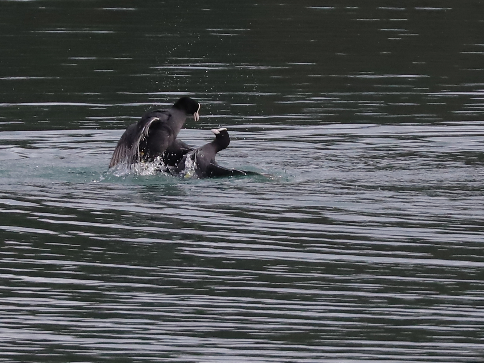 Dernier changement de décor, le niveau du lac. A cause d’un vent soutenu, il n’y avait pas beaucoup d’oiseaux ni sur l’eau ni sur les rives, à part un petit groupe de Grèbes castagneux Tachybaptus ruficollis au loin.