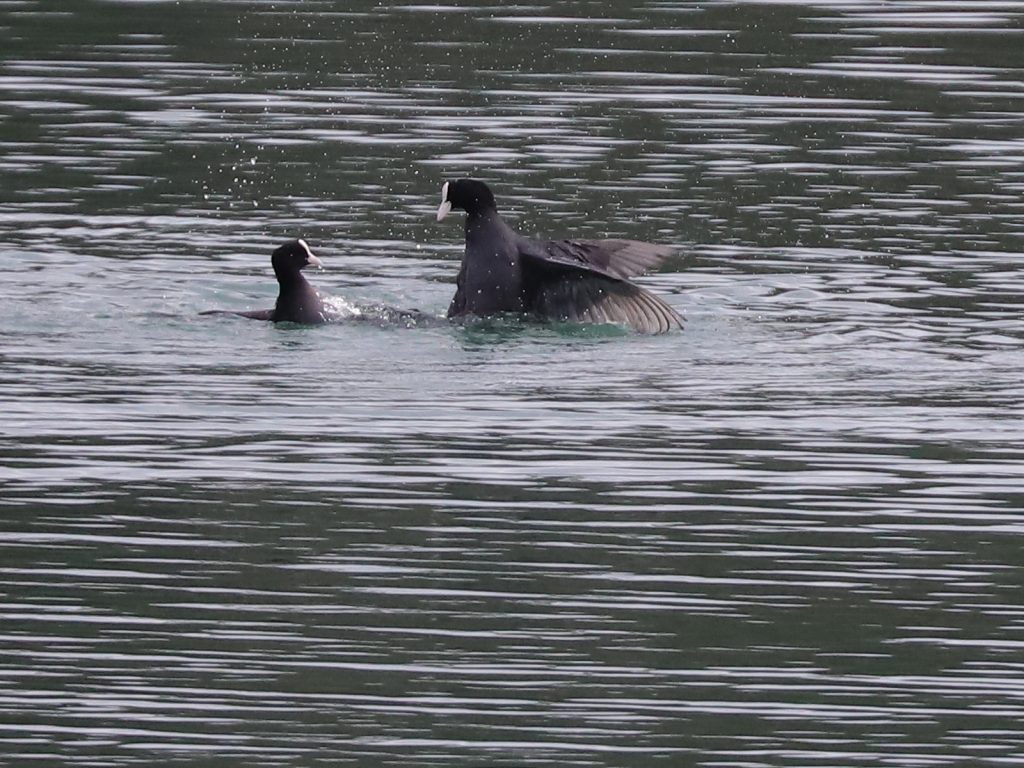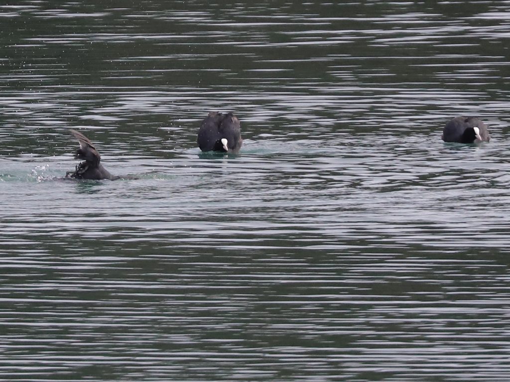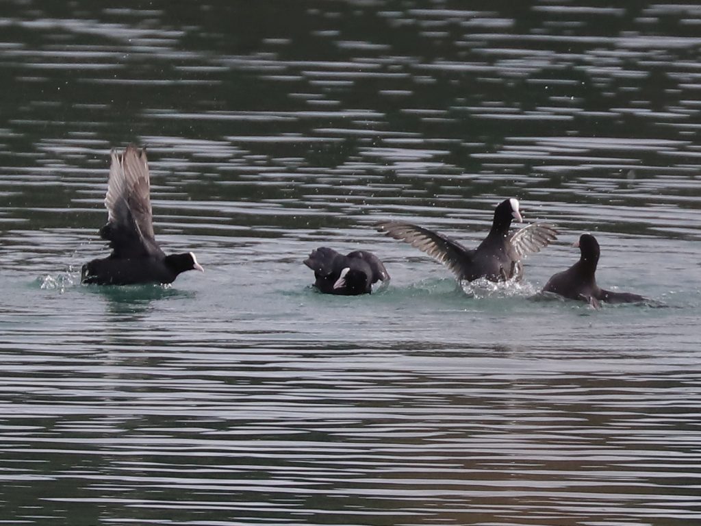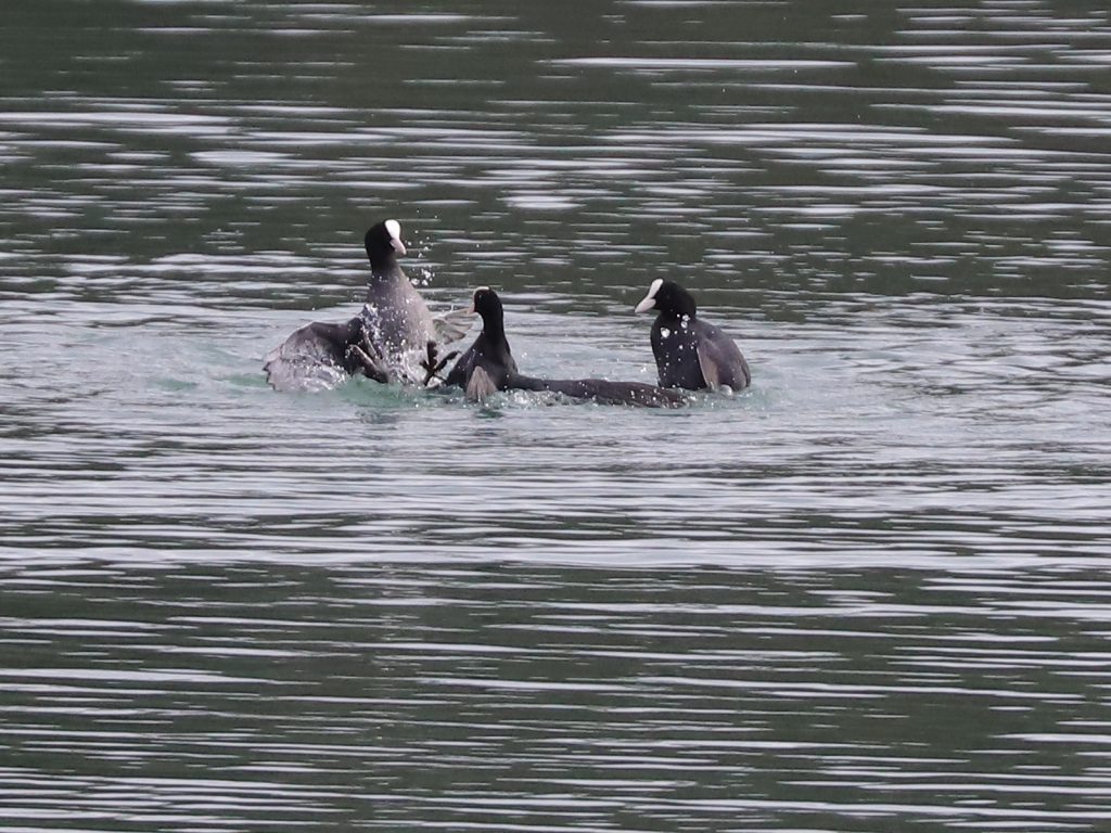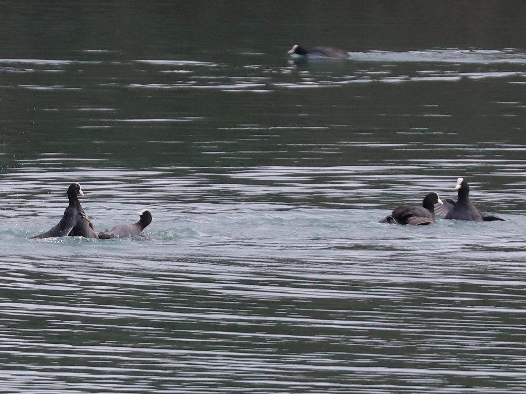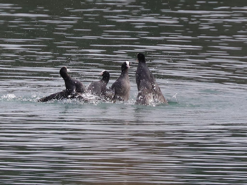 Pour trouver des groupes, il faut regarder vers le lac pour y trouver les Grèbes castagneux Tachybaptus ruficollis, qui chassent en bandes, parfois d’une trentaine d’individus.