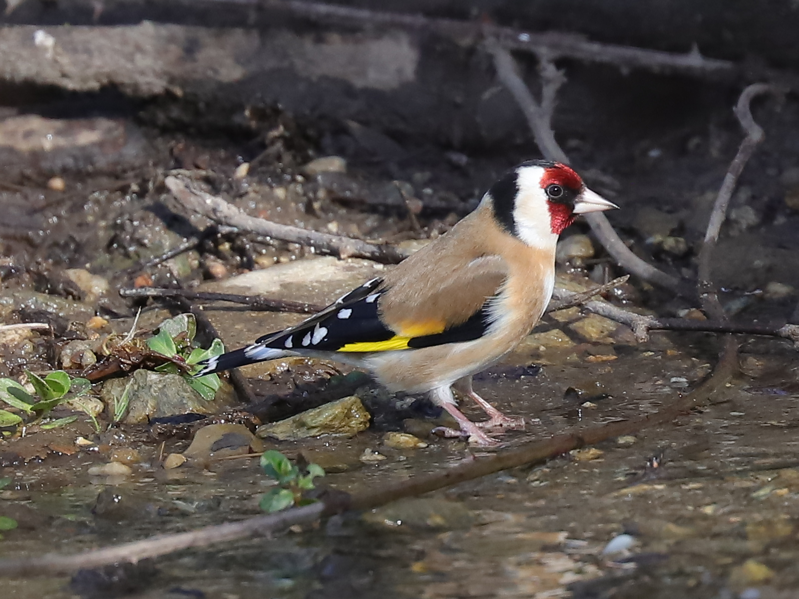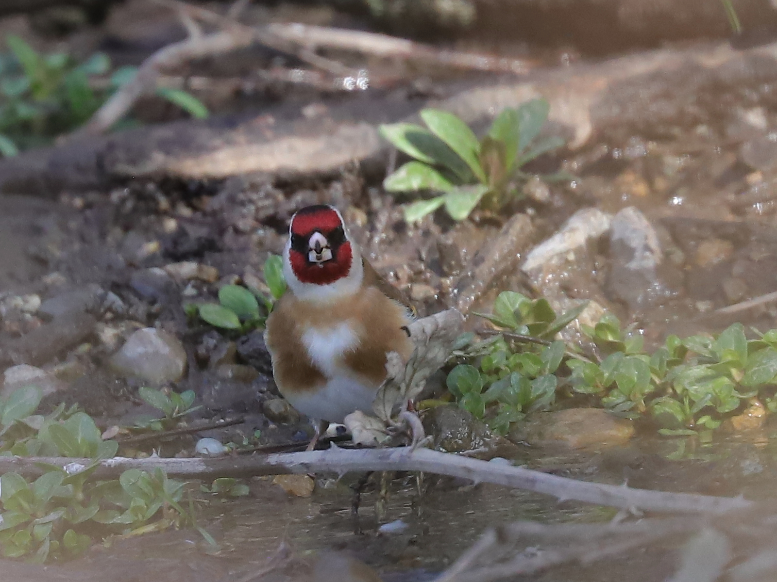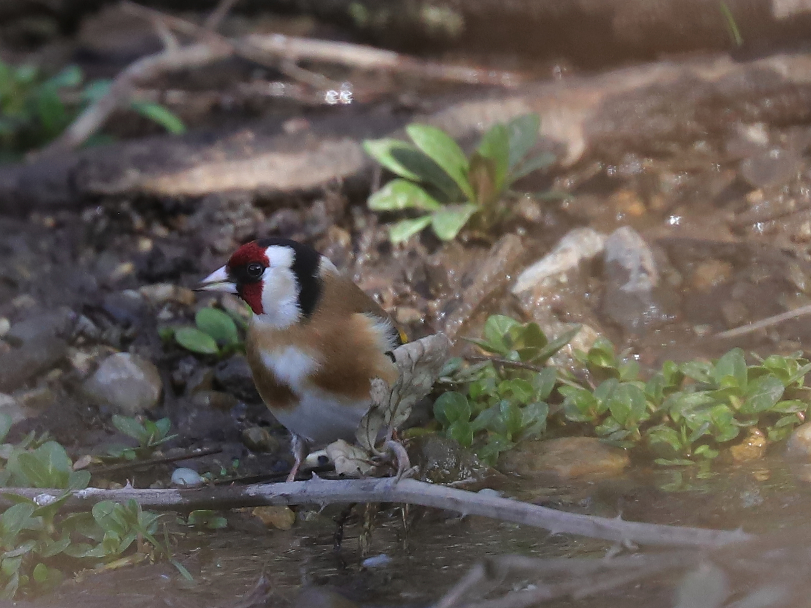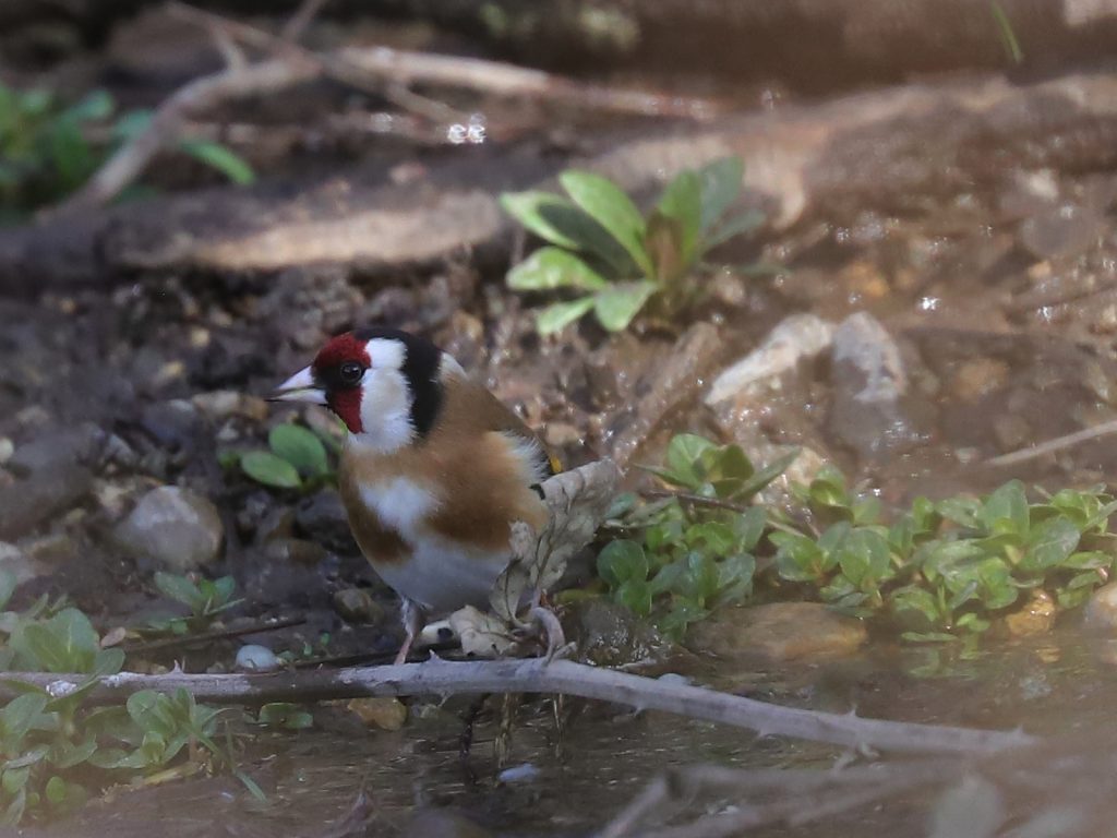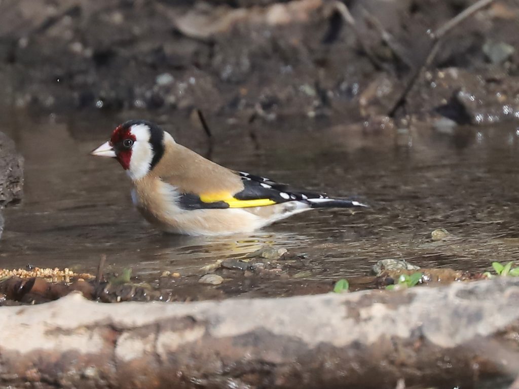 Quelques Chardonnerets élégants Carduelis carduelis sont venus prendre un bain rapide.