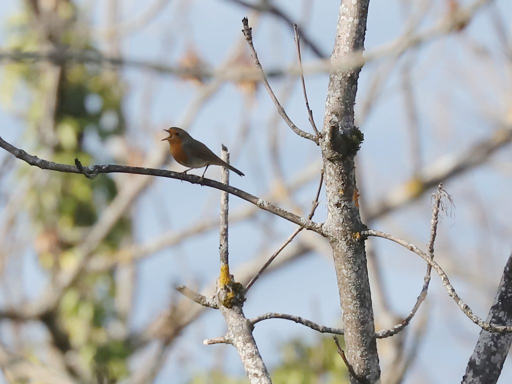 L’air sentait le printemps cette semaine, même si les feuilles ne sont pas encore apparues sur les arbres, et le Rougegorge familier Erithacus rubecula s’est égosillé pour fixer son territoire …