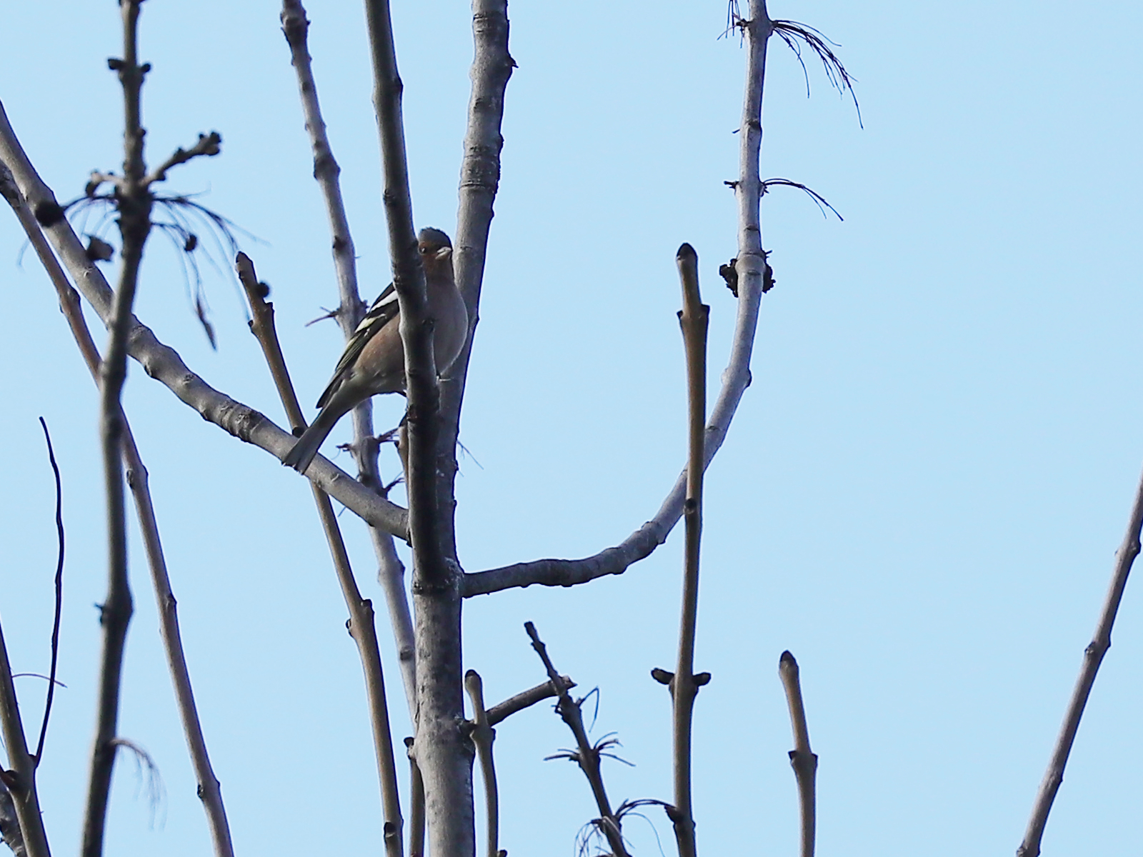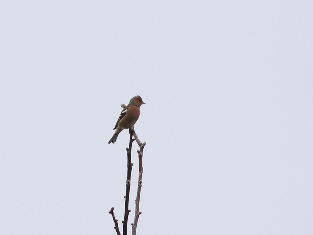 Les Pinsons des arbres Fringilla coelebs restent difficiles à photographier puisqu’ils se réfugient dans les arbres à la moindre alerte.