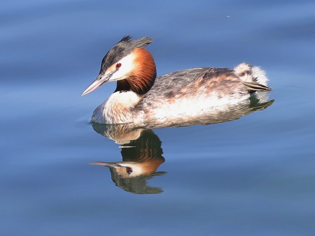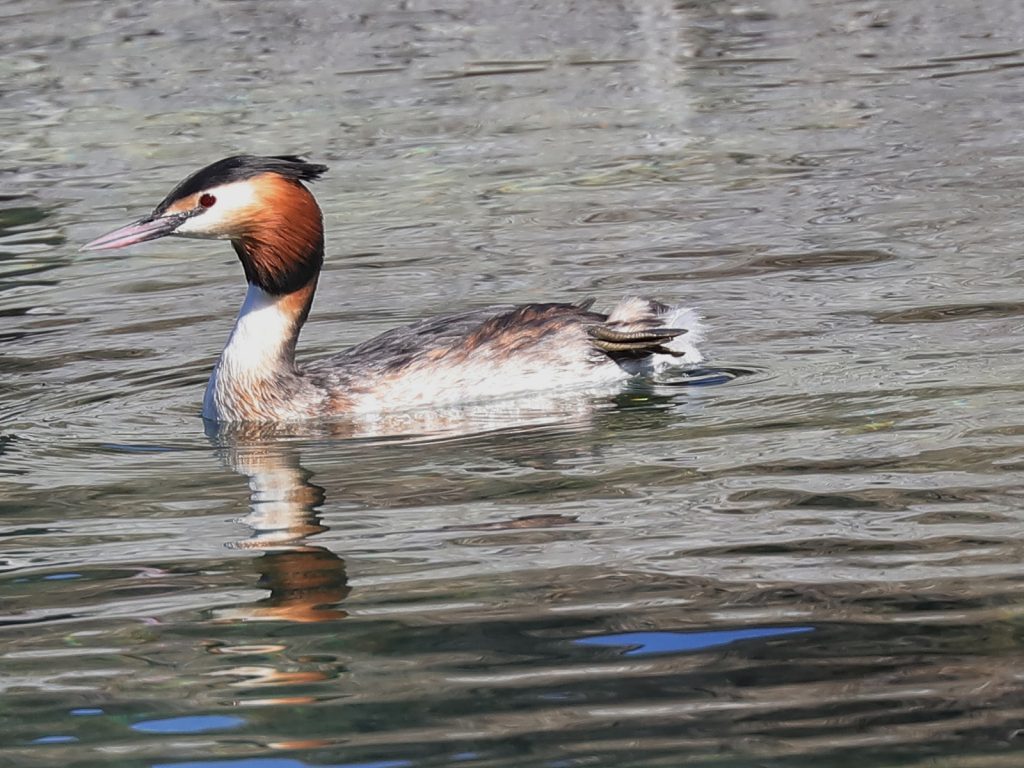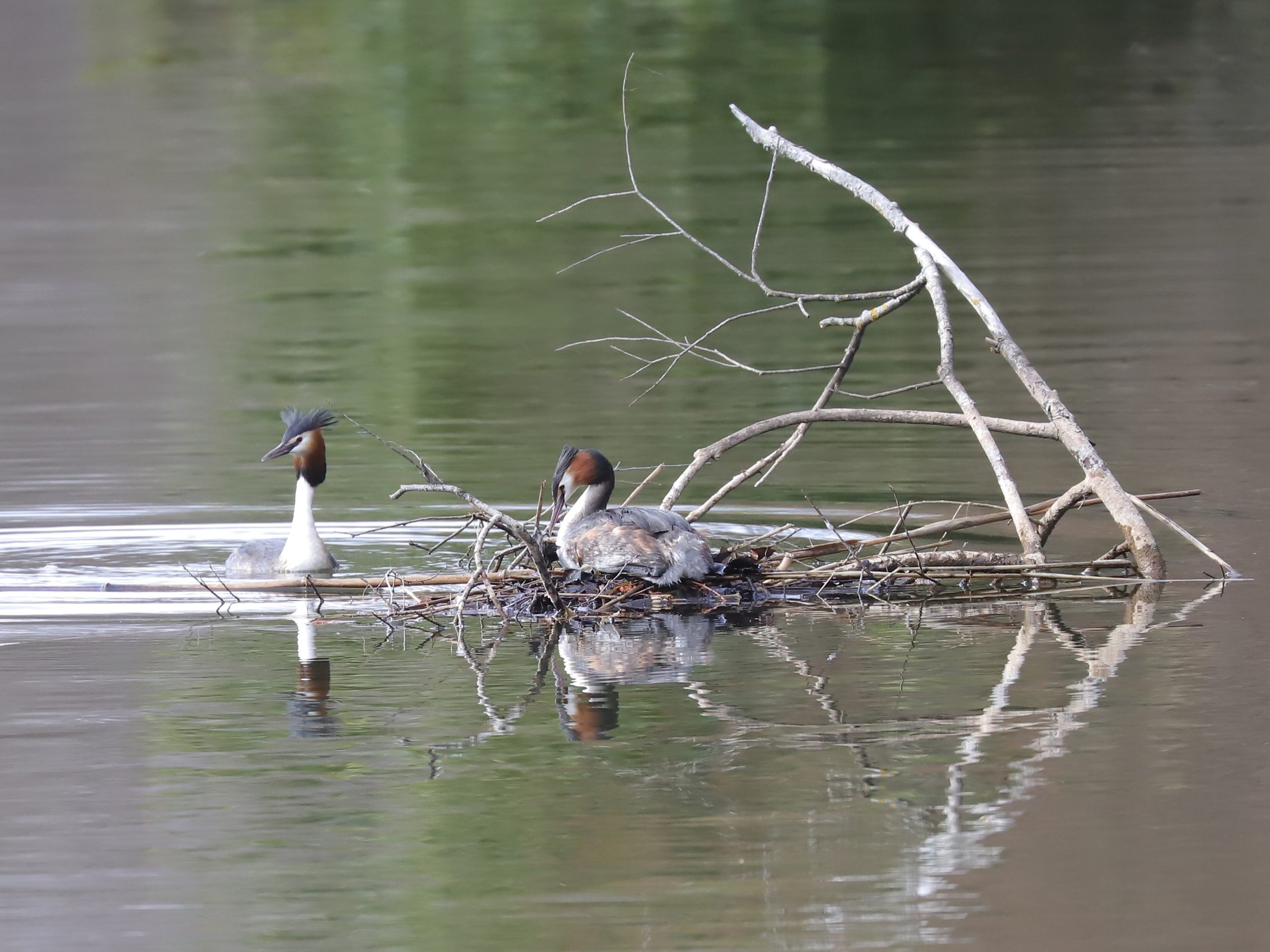 Chez les Grèbes huppés Podiceps cristatus, voici le premier nid de la saison …