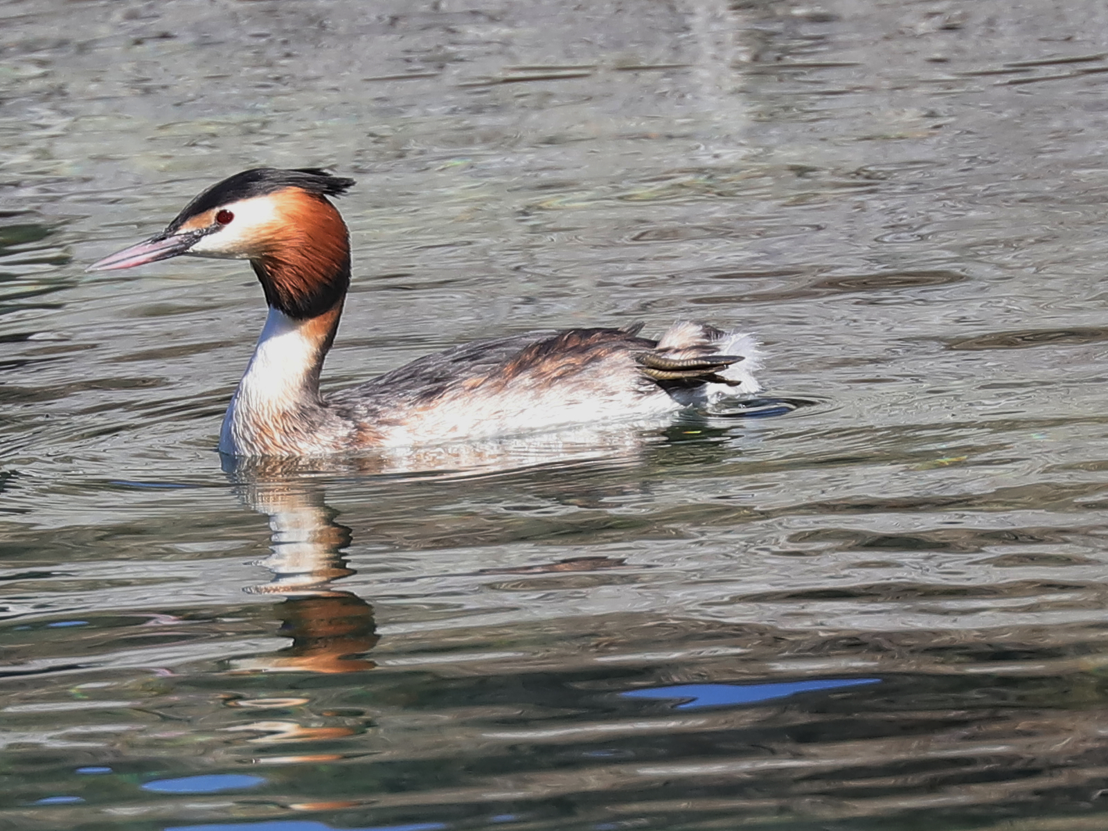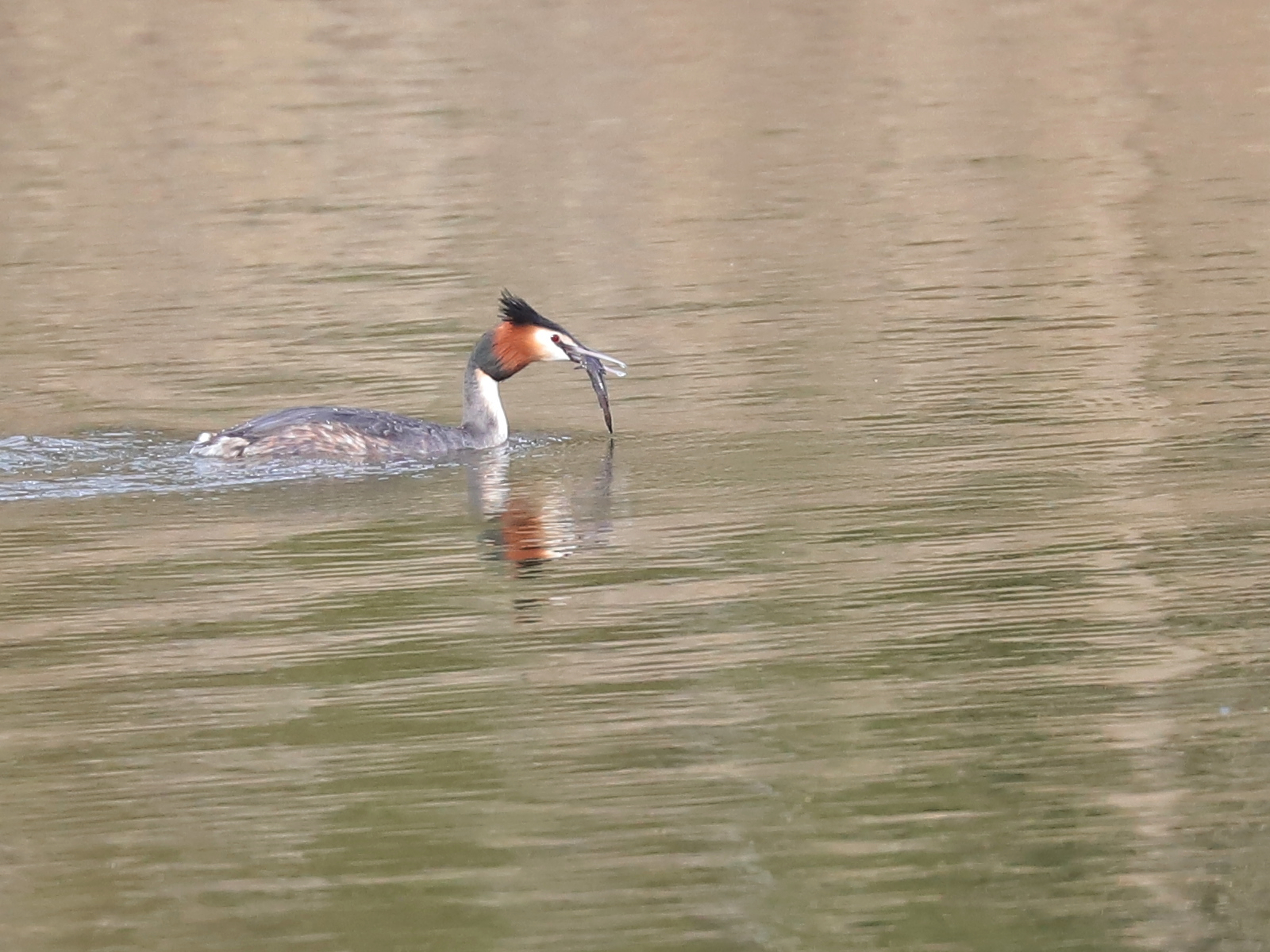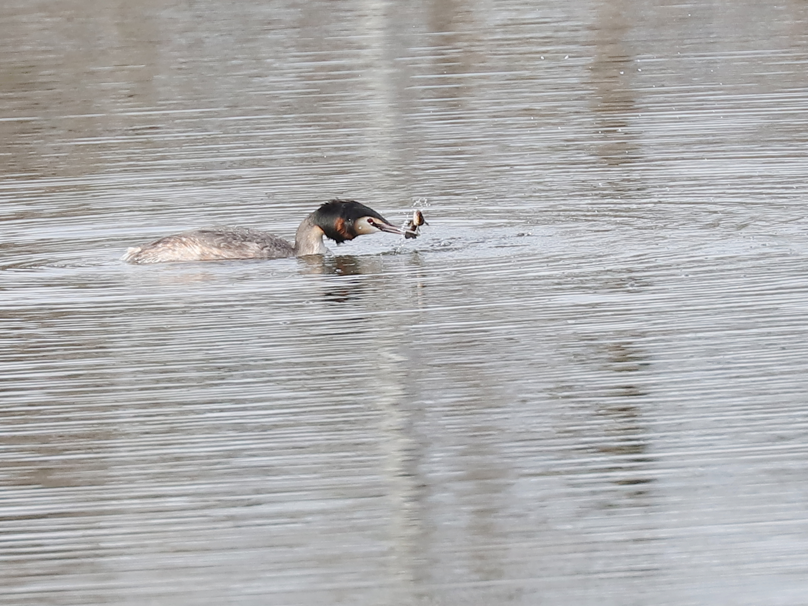 … alors que d’autres « jouent » avec un poisson probablement destiné à être un cadeau. Sinon le grèbe l’aurait avalé sans tarder.