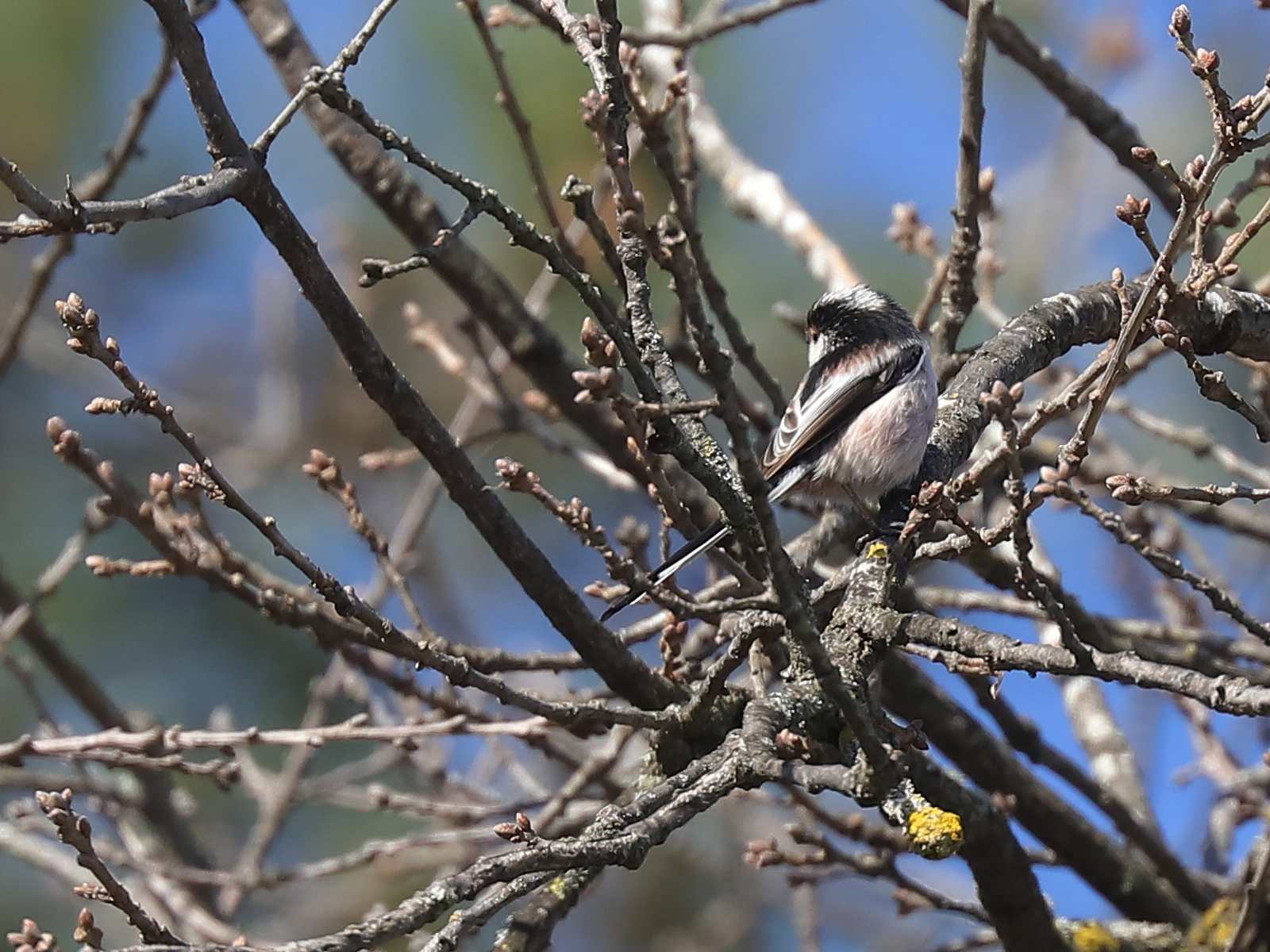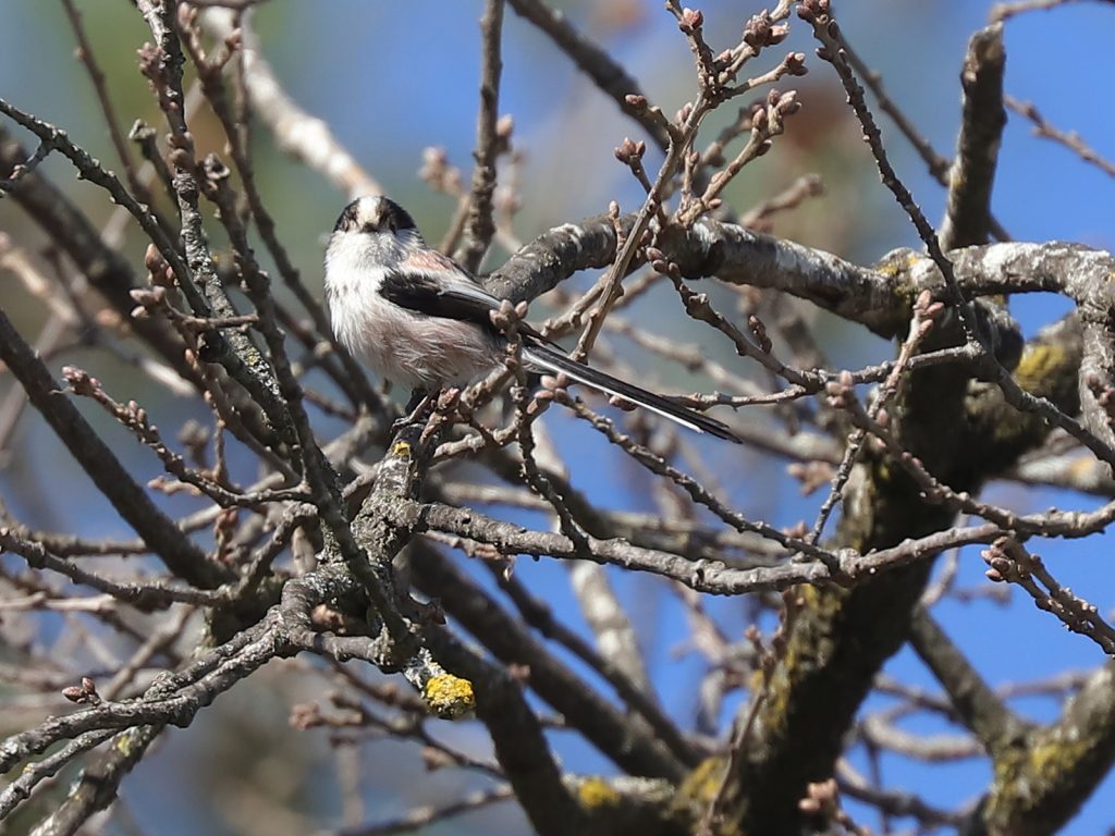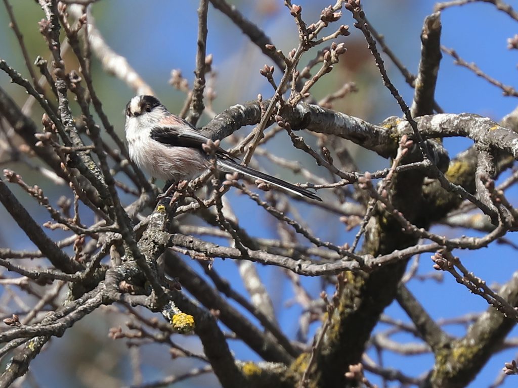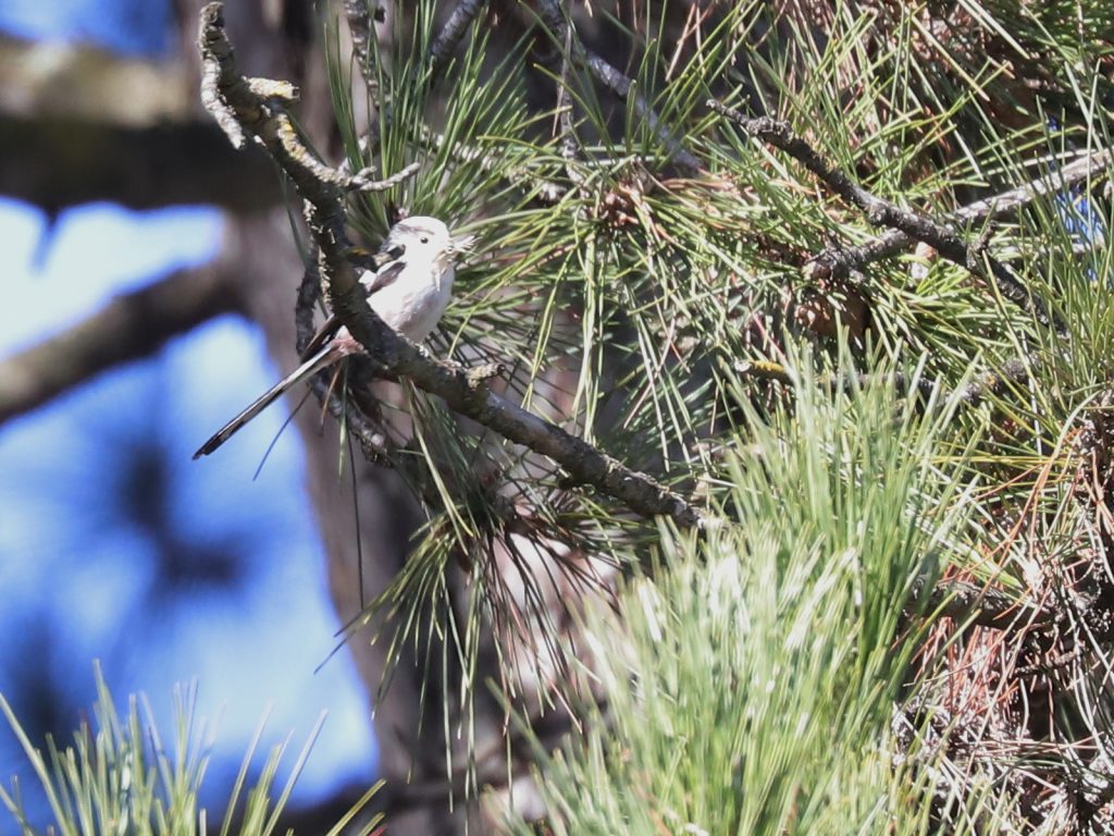 Les Orites ou Mésanges à longue queue Aegithalos caudatus s’occupent de tisser leur nid, n’hésitant pas à venir prélever de la soie sur les nids de chenilles processionnaires. Je doute que cette action affaiblisse significativement les nids de ces chenilles.