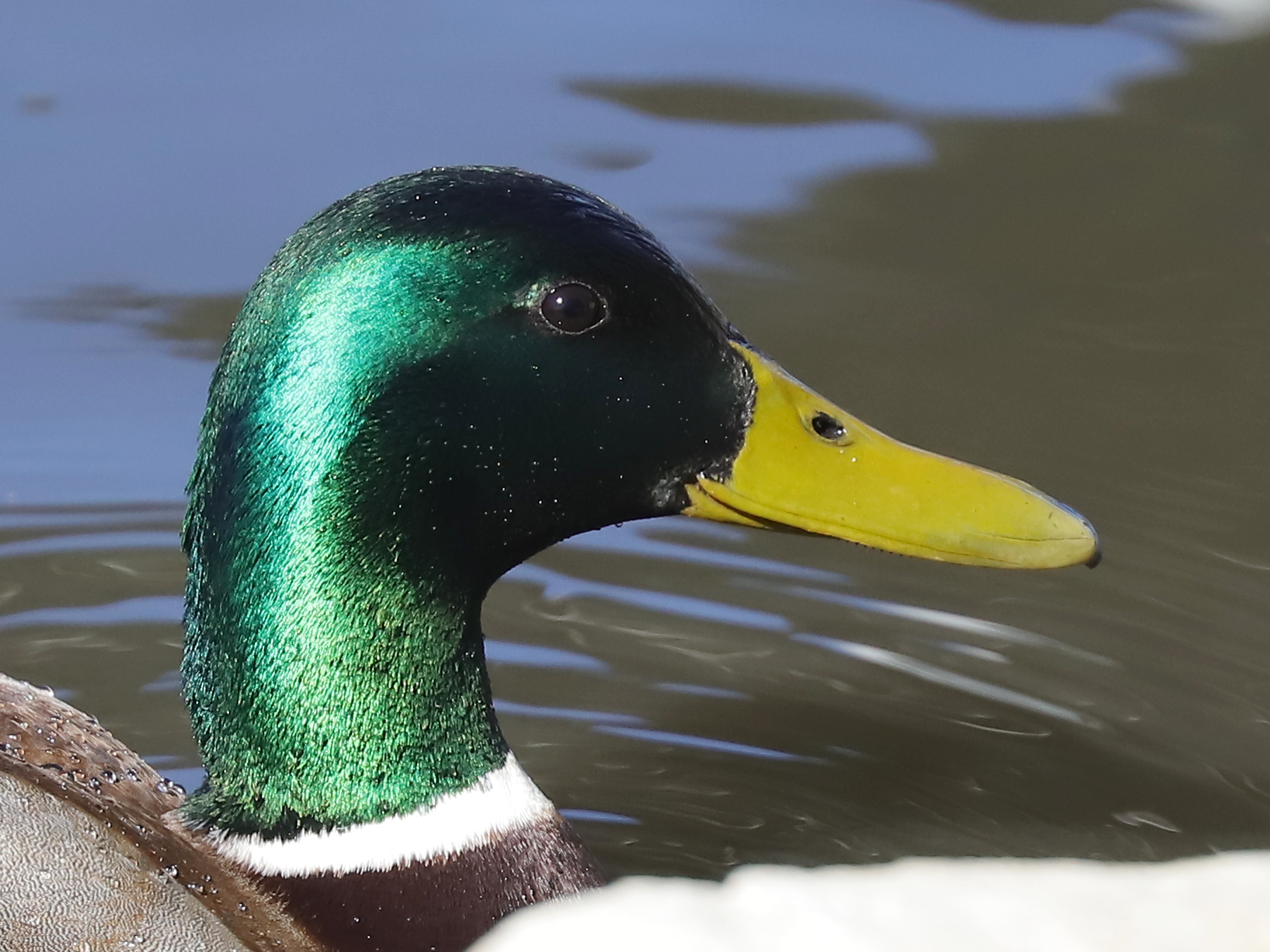 … ou au plumage nuptial qu’a revêtu le mâle du Canard colvert Anas platyrhynchos, canard autrement commun et assez quelconque.