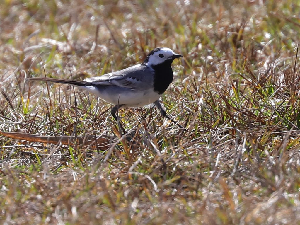 Les Bergeronnettes grises Motacilla alba prospectent les zones herbeuses à la recherche d’insectes.