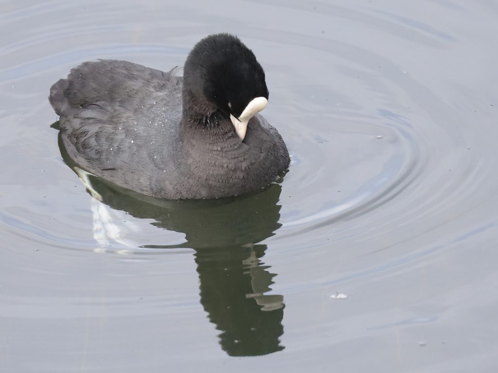 Clôture de la collection de cette semaine sur le Foulque macroule Fulica atra, pour une fois occupé à autre chose qu’une querelle de voisinage.