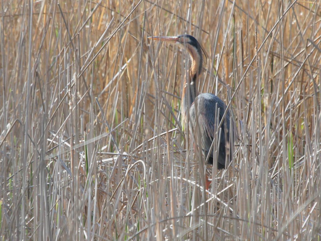 Le Héron pourpré est moins répandu que le Héron cendré. Je n’en ai vu que dans la réserve du Creux de Terre à Chavornay (Suisse) ou dans la réserve de l’Etournel au bord du Rhône à coté de Bellegarde-sur-Valserine. Il est un peu plus petit que le Héron cendré, beaucoup plus discret et farouche.
