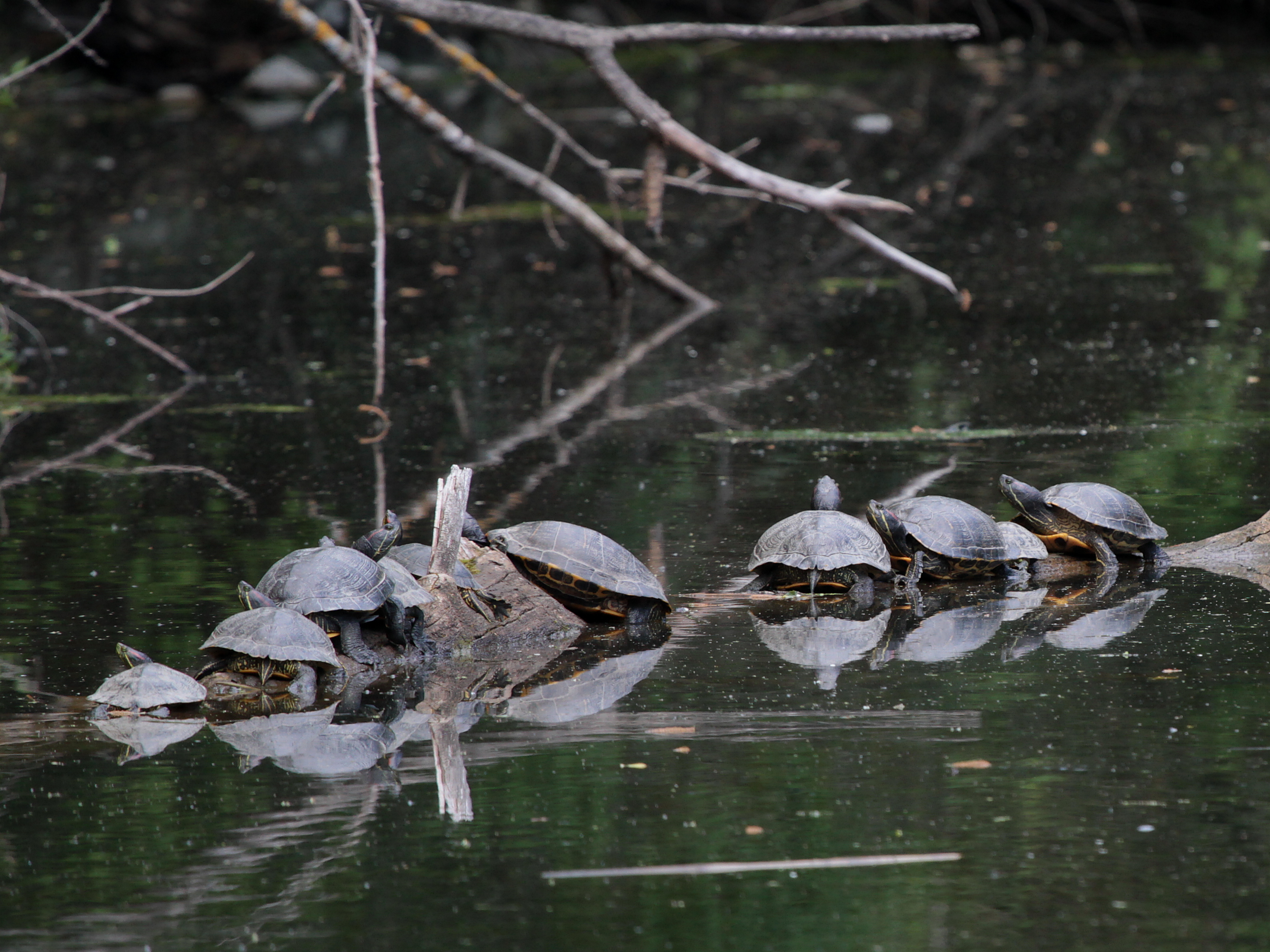 La tortue de Floride s’est installée dans les marais de l’Etournel, à partir de quelques individus relâchés dans la nature par des gens qui en avaient assez d’avoir cet animal dans un aquarium-terrarium à la maison. Malgré les températures plus froides de nos hivers que ceux de Floride, cette espèce se multiplie sans aucun prédateur naturel…