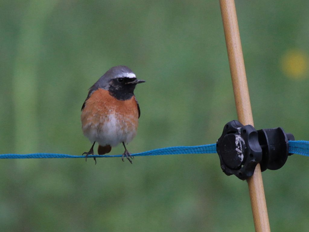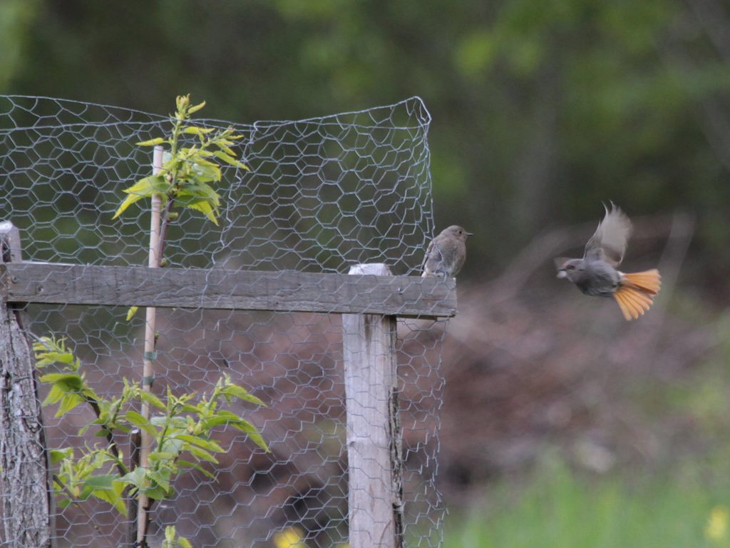 Le Rougequeue noir est un familier de mes photos. Par contre le Rougequeue à front blanc est moins fréquent. Ces oiseaux au corps orangé sont les mâles, de même que les oiseaux à tête noire sont les mâles du Rougequeue noir. Les femelles sont, comme l’oiseau de gauche de la troisième photo, presque identiques pour les deux espèces.