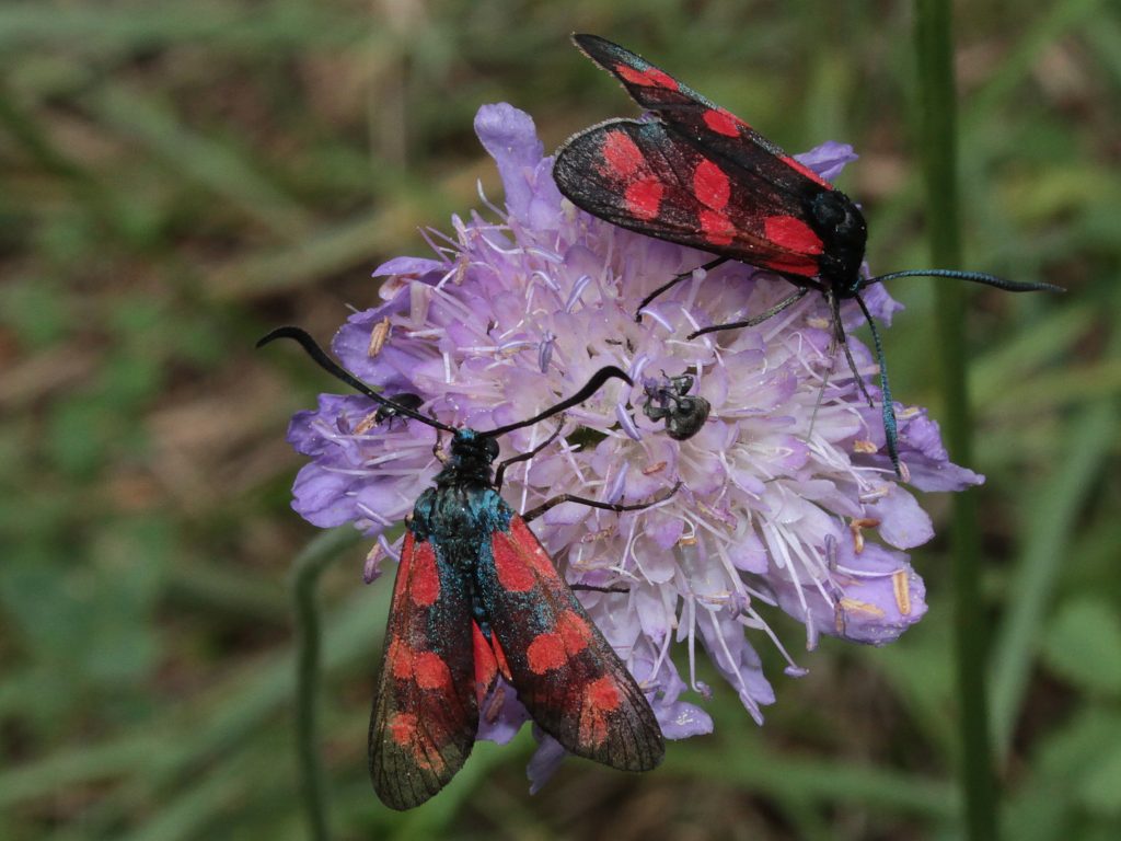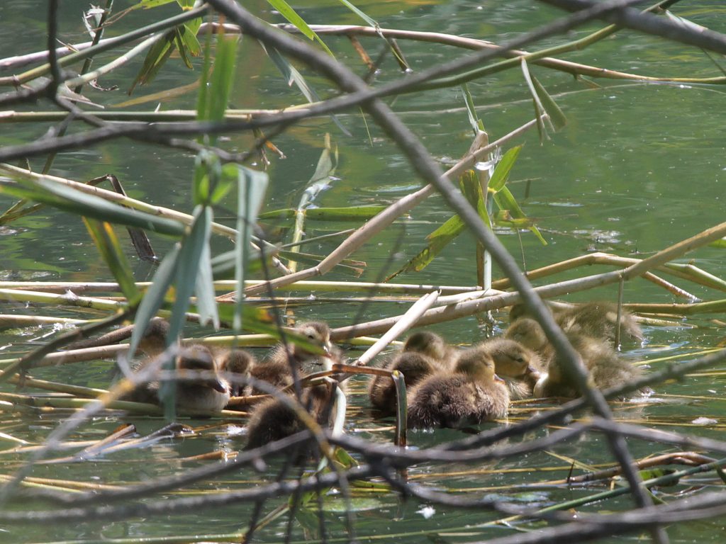 Puisqu’il est question de libellules, j’ai eu la chance d’assister à une ponte d’Aeschne bleue. En première photo, un mâle surveillant son territoire. En 2 un gros plan sur la façon dont le mâle s’agrippe à la femelle, juste derrière sa tête, grâce aux crochets qui sont à l’extrémité de son abdomen. Chez les Aeschnes, le mâle accompagne ainsi la femelle pendant le vol de ponte, ponte qui se fait dans les herbes autour du plan d’eau et non dans l’eau directement.