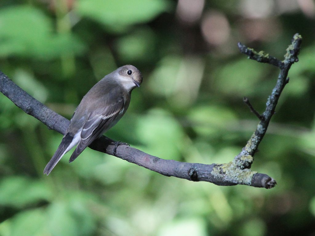 Les Gobemouches, gris et noirs, font halte quelques jours sur leur chemin vers l’Afrique. Ils se perchent sur des branches et guettent les insectes qu’ils capturent en vol la plupart du temps et parfois au sol.