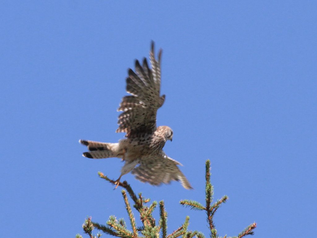 … et un Faucon hobereau subadulte, en pleine chasse aux libellules au-dessus d’un petit lac de montagne (l’adulte a les culottes plus rousses).