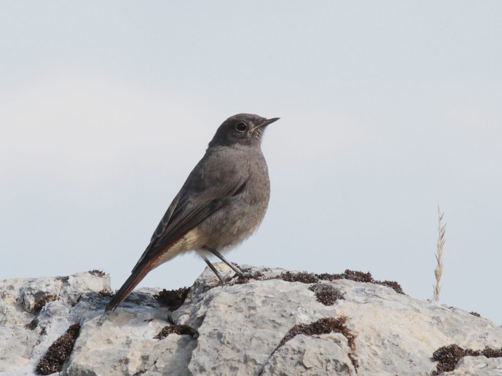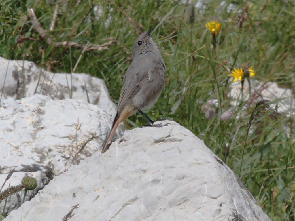 Il y a encore des jeunes qui devront partir bientôt, reconnaissables aux bords de becs jaunes, ici chez les Rougequeues noirs.