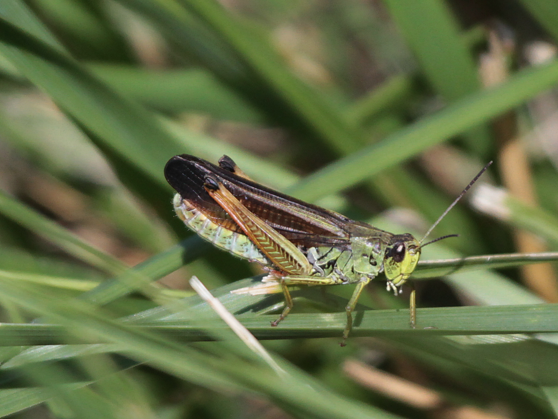 Puisqu’il est question de libellules, j’ai eu la chance d’assister à une ponte d’Aeschne bleue. En première photo, un mâle surveillant son territoire. En 2 un gros plan sur la façon dont le mâle s’agrippe à la femelle, juste derrière sa tête, grâce aux crochets qui sont à l’extrémité de son abdomen. Chez les Aeschnes, le mâle accompagne ainsi la femelle pendant le vol de ponte, ponte qui se fait dans les herbes autour du plan d’eau et non dans l’eau directement.