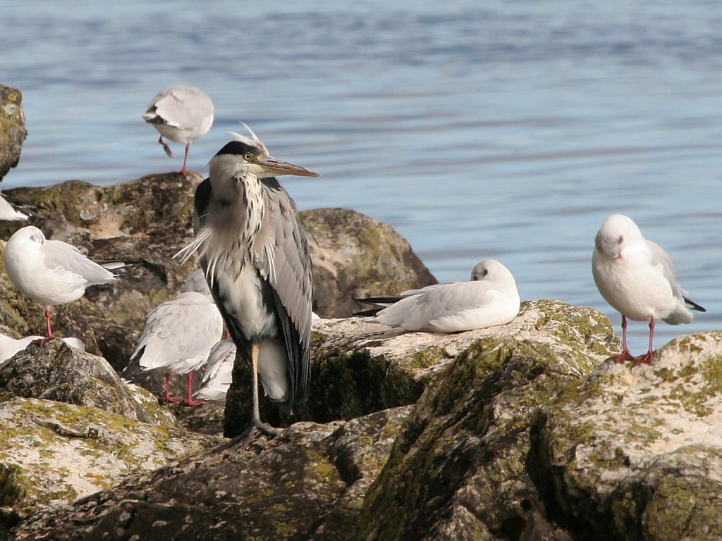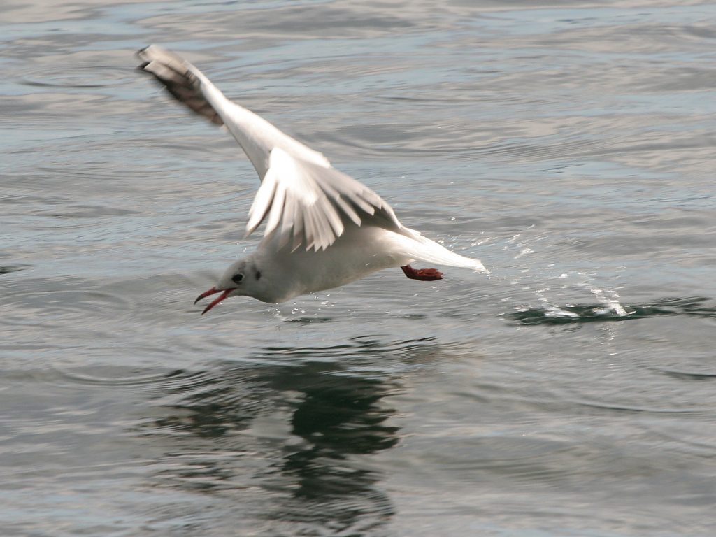Pour rester en bordure de lac, Léman cette fois, voici quelques images des proies puis des chasseurs, les Mouettes rieuses (qui ont perdu le plumage brun chocolat de la tête en période nuptiale) et une Sterne pierregarin, plus rare. La technique des deux prédateurs est similaire, vol au ras de l’eau au-dessus des bancs d’alevins et plonger soit le bec soit le corps entier pour tenter une capture, avec un faible taux de réussite pendant le temps de mon observation.