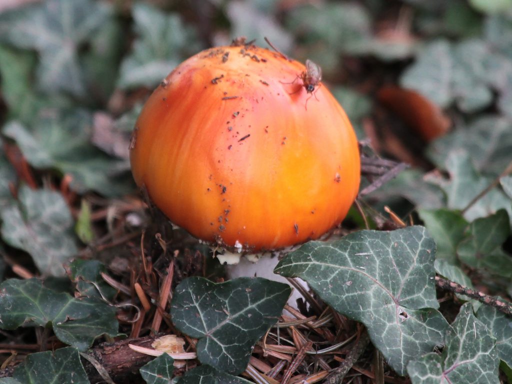 La semaine dernière, je présentais un champignon orange encore à identifier : c’est une amanite, peut-être l’amanite des césars mais je ne m’y risque pas. J’ai vu aussi une lépiote couverte de goutelettes de rosée et un satyre puant dont les mouches ont mangé tout le chapeau de mucus vert.