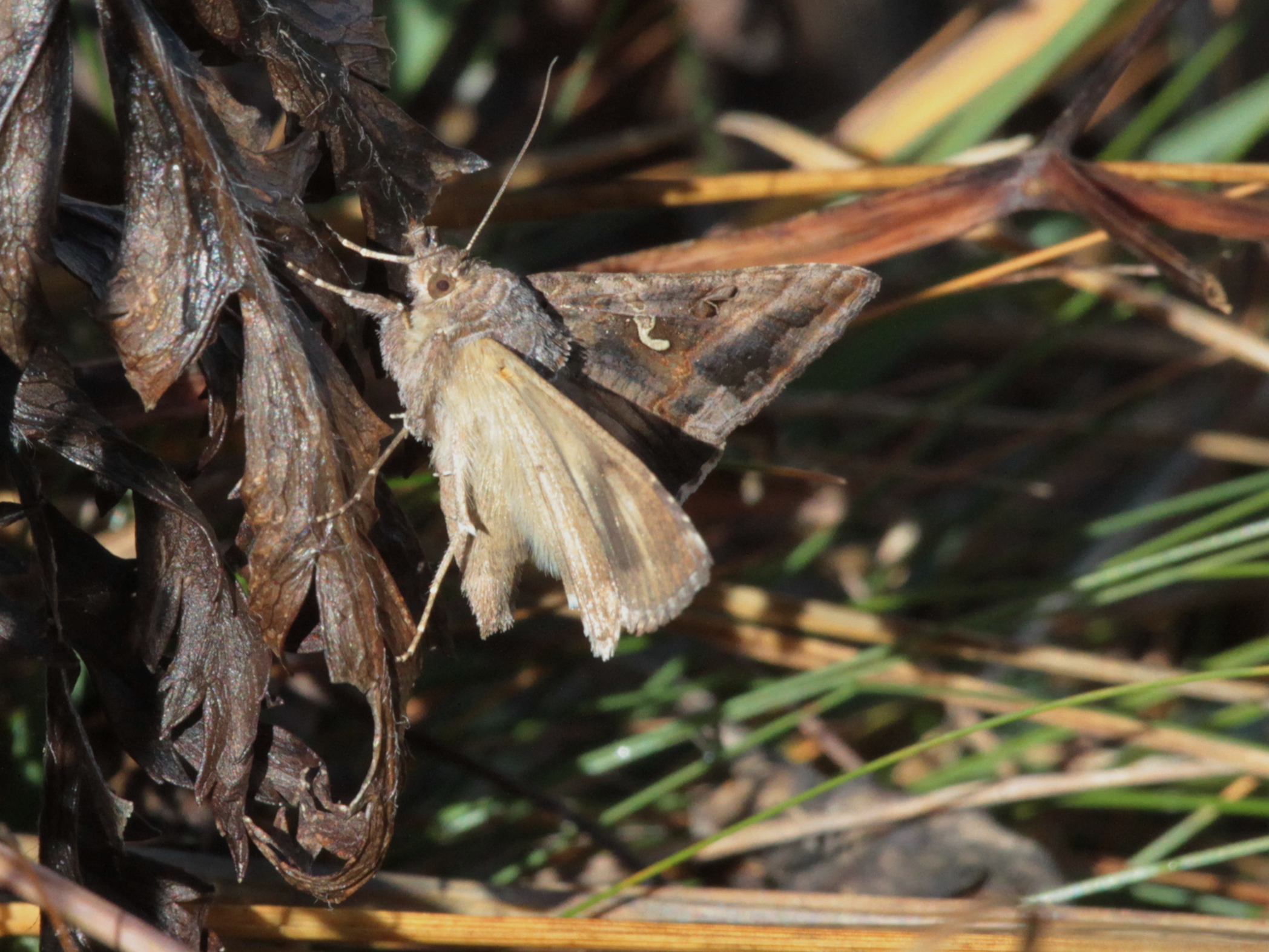 On trouve encore de nombreux papillons, dont cet Autographa gamma qui attend la nuit.