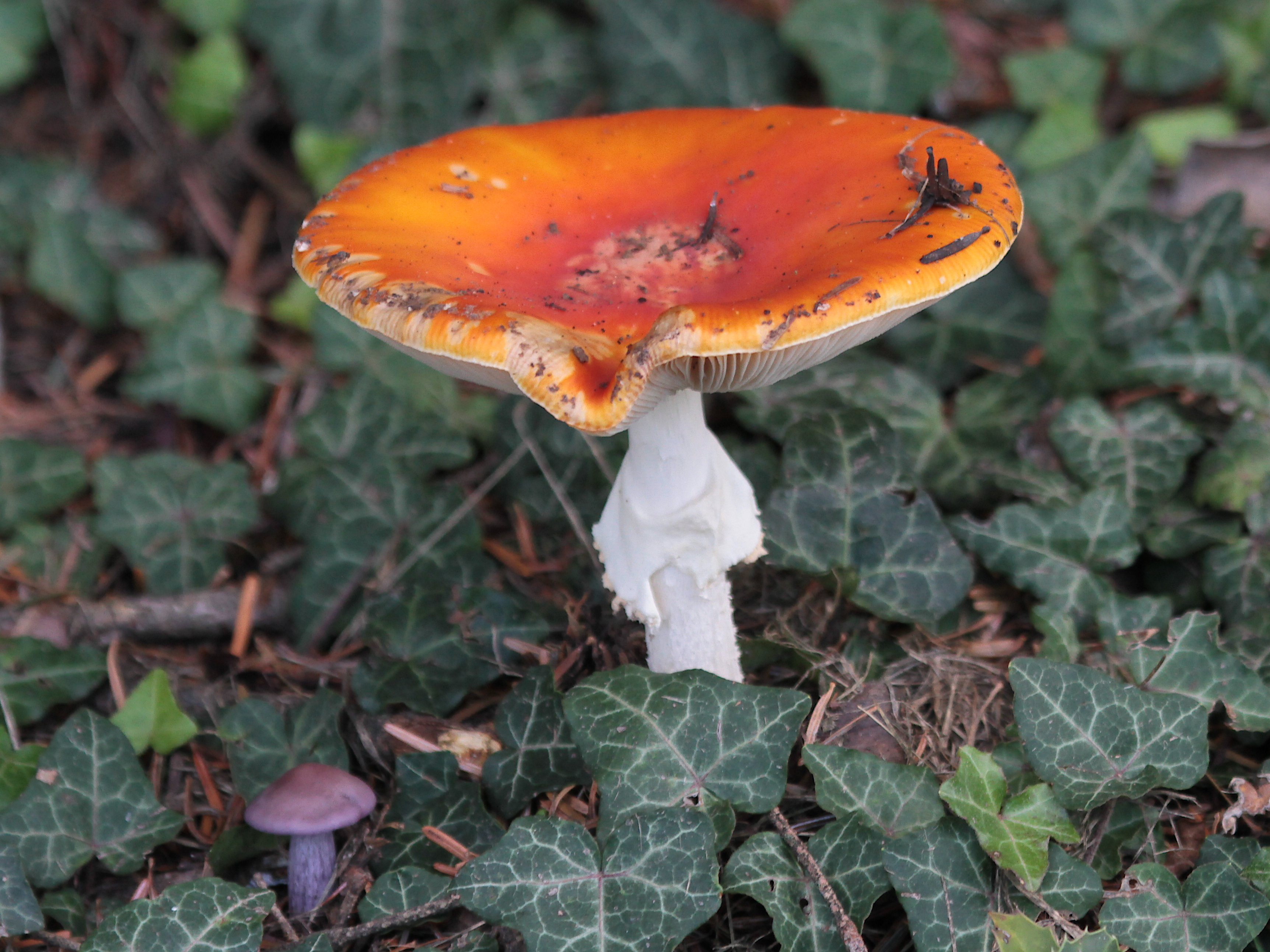 La semaine dernière, je présentais un champignon orange encore à identifier : c’est une amanite, peut-être l’amanite des césars mais je ne m’y risque pas. J’ai vu aussi une lépiote couverte de goutelettes de rosée et un satyre puant dont les mouches ont mangé tout le chapeau de mucus vert.