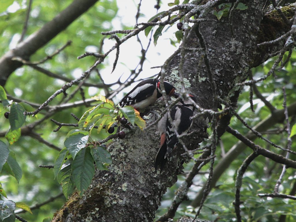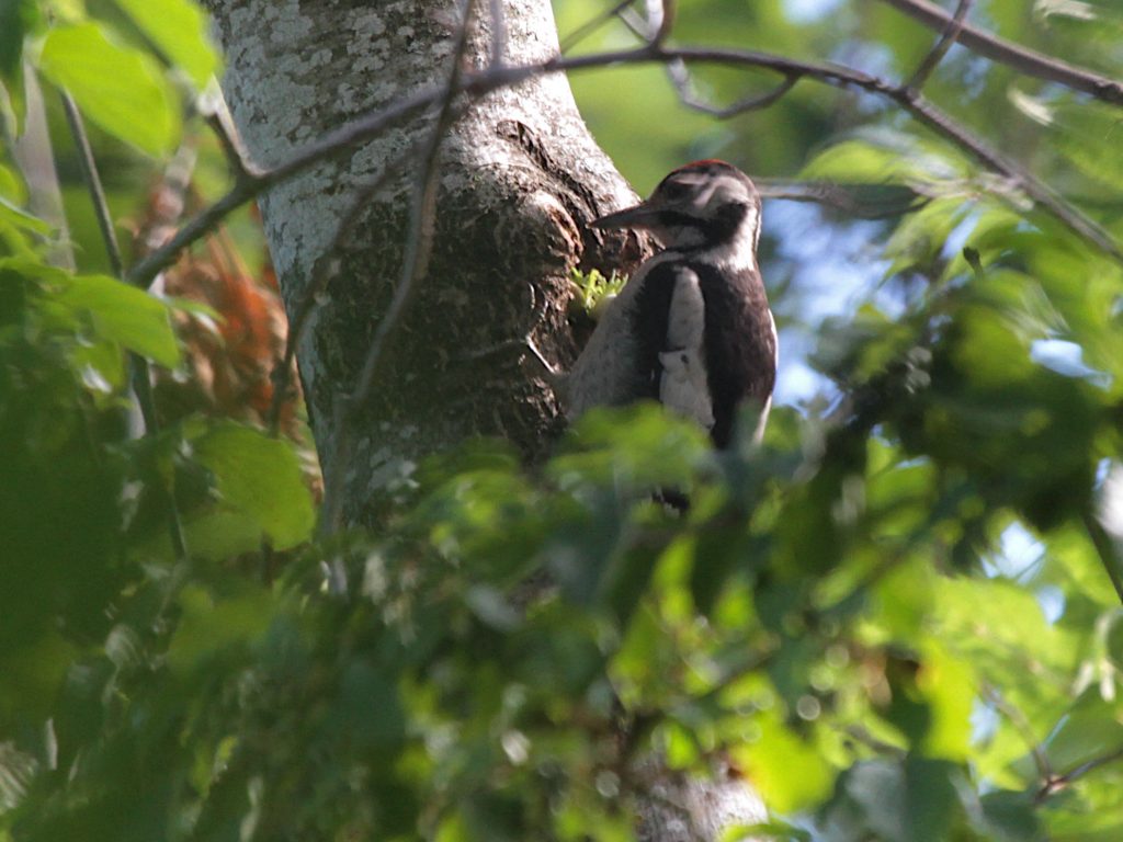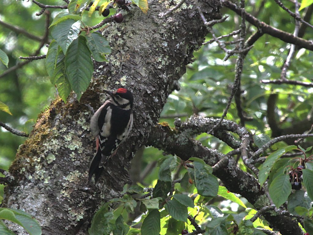 En premier , un Pic épeiche qui porte encore sa calotte rouge, essaye de casser une noisette qu’il a coincée dans une fente du tronc. Lassé de ne pas avoir de résultat, il est parti sans insister : ils n’ont aucune patience !