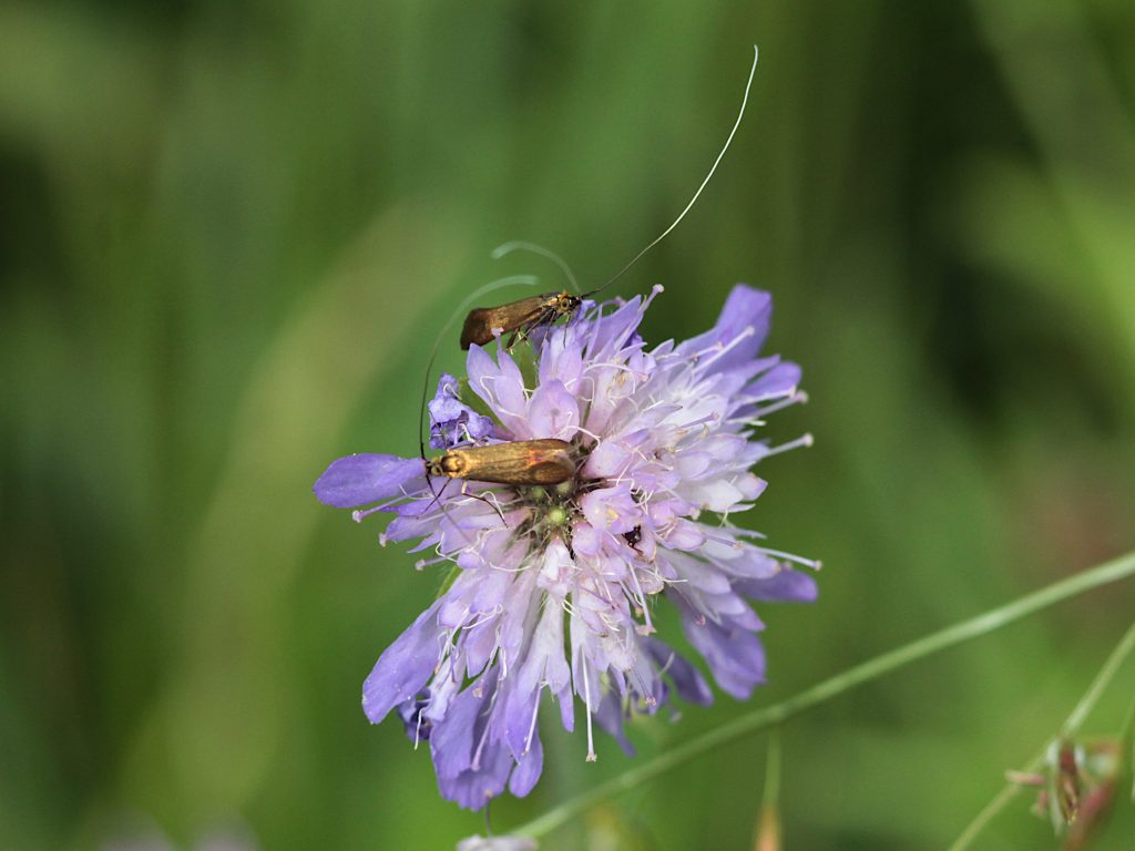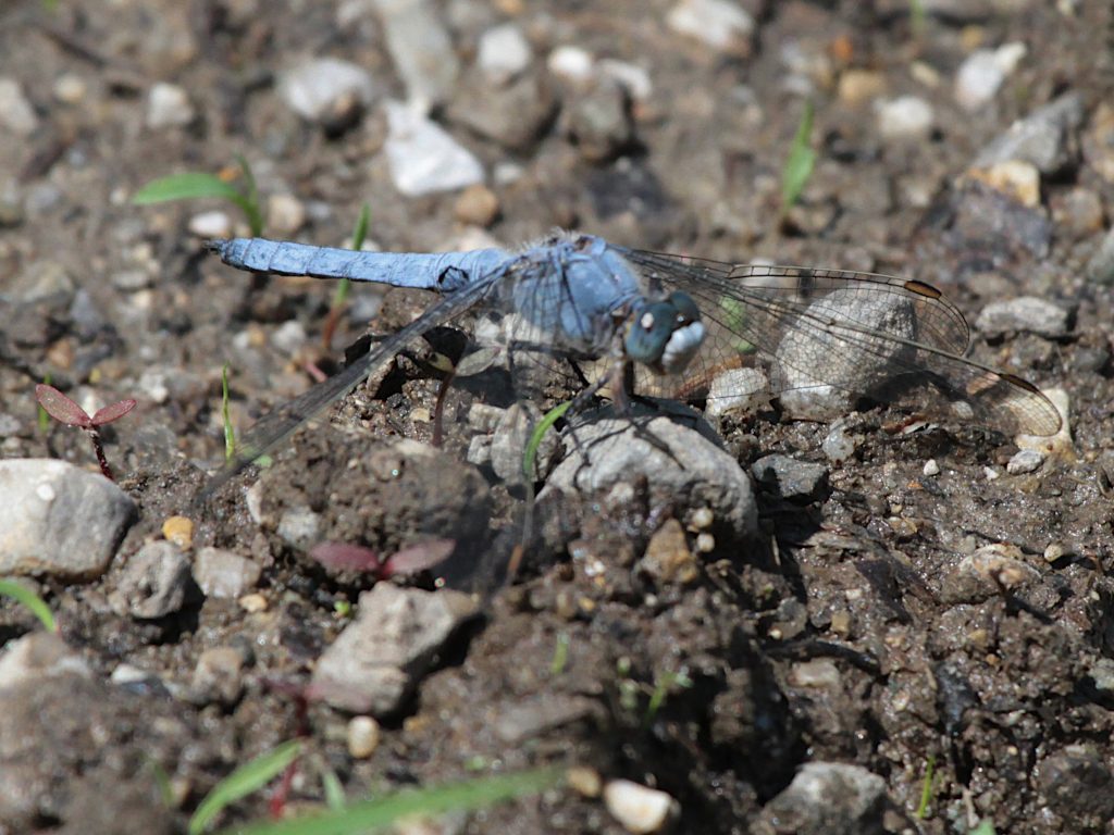 Et quelques libellules, pour terminer. L’Orthétrum brun (pour une fois, c’est la couleur de la femelle qui donne son nom à l’espèce) m’avait intrigué par deux petits machins noirs derrière les yeux. C’est grâce au gros plan que j’ai pu voir que cette libellule tient ses deux pattes avant repliées derrière la tête. Curieux !