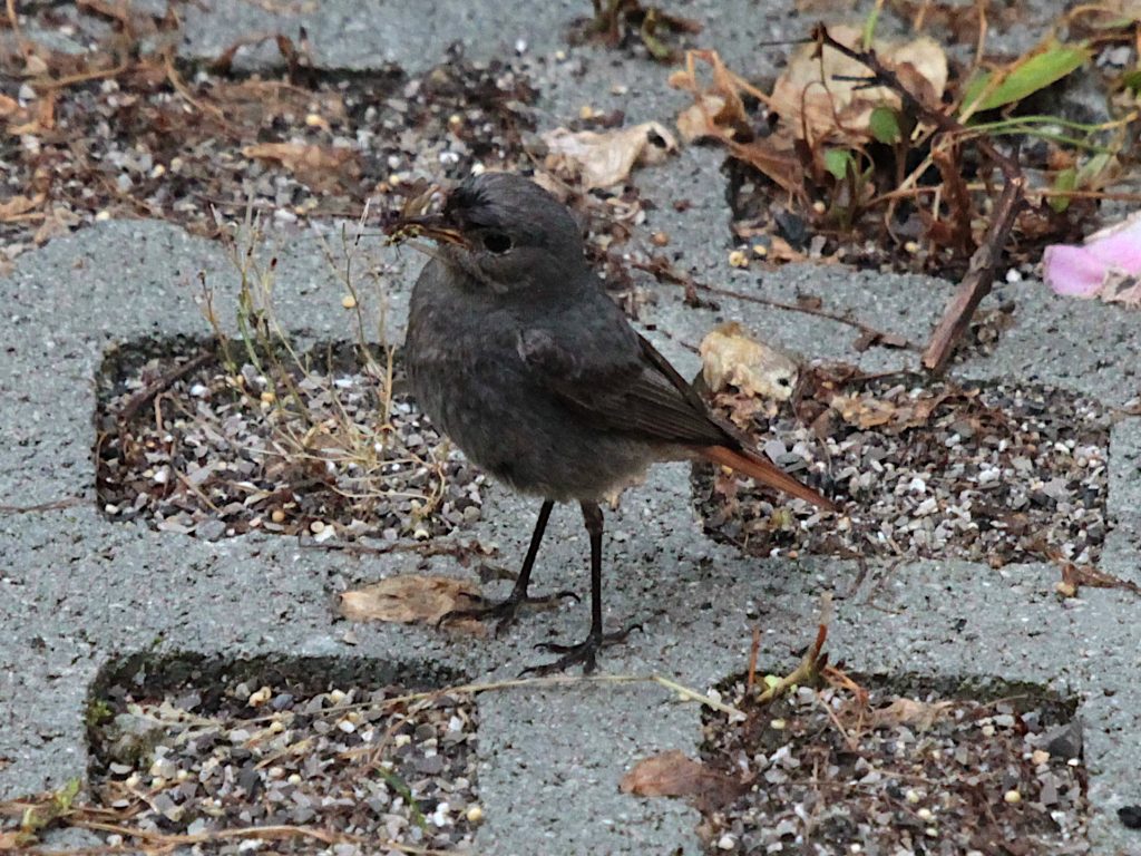 Le Merle noir, avec son plumage tacheté, est beaucoup moins farouche que les adultes et prend le temps d’apprécier si je constitue une menace ou non.