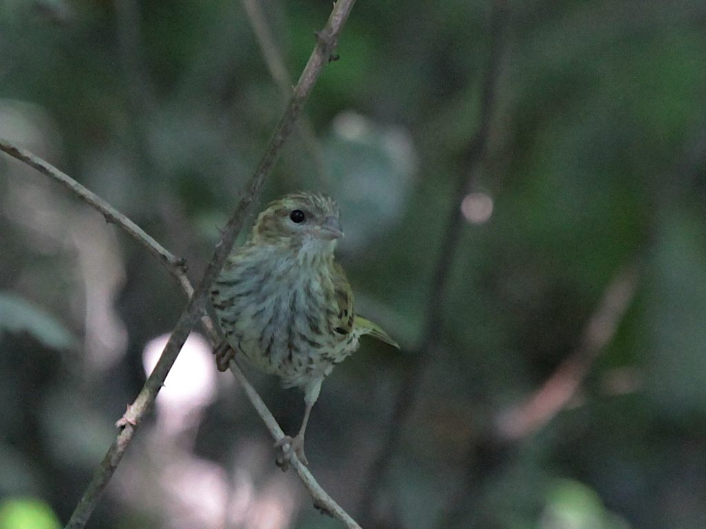 Le Serin cini fait aussi dans la discrétion avant de prendre son plumage jaune au printemps prochain.