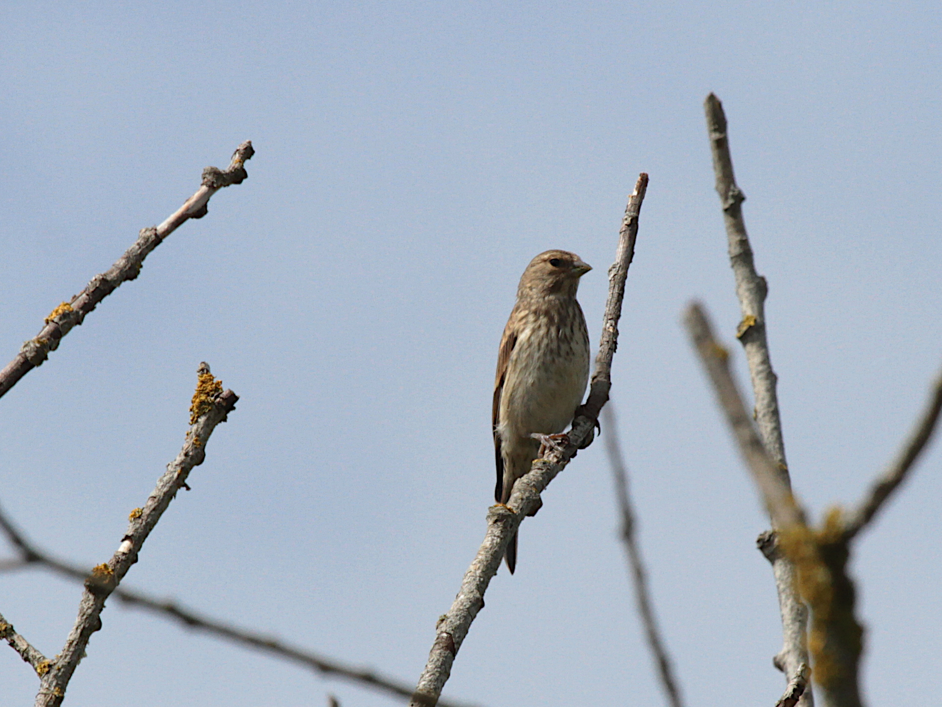 Le Serin cini fait aussi dans la discrétion avant de prendre son plumage jaune au printemps prochain.