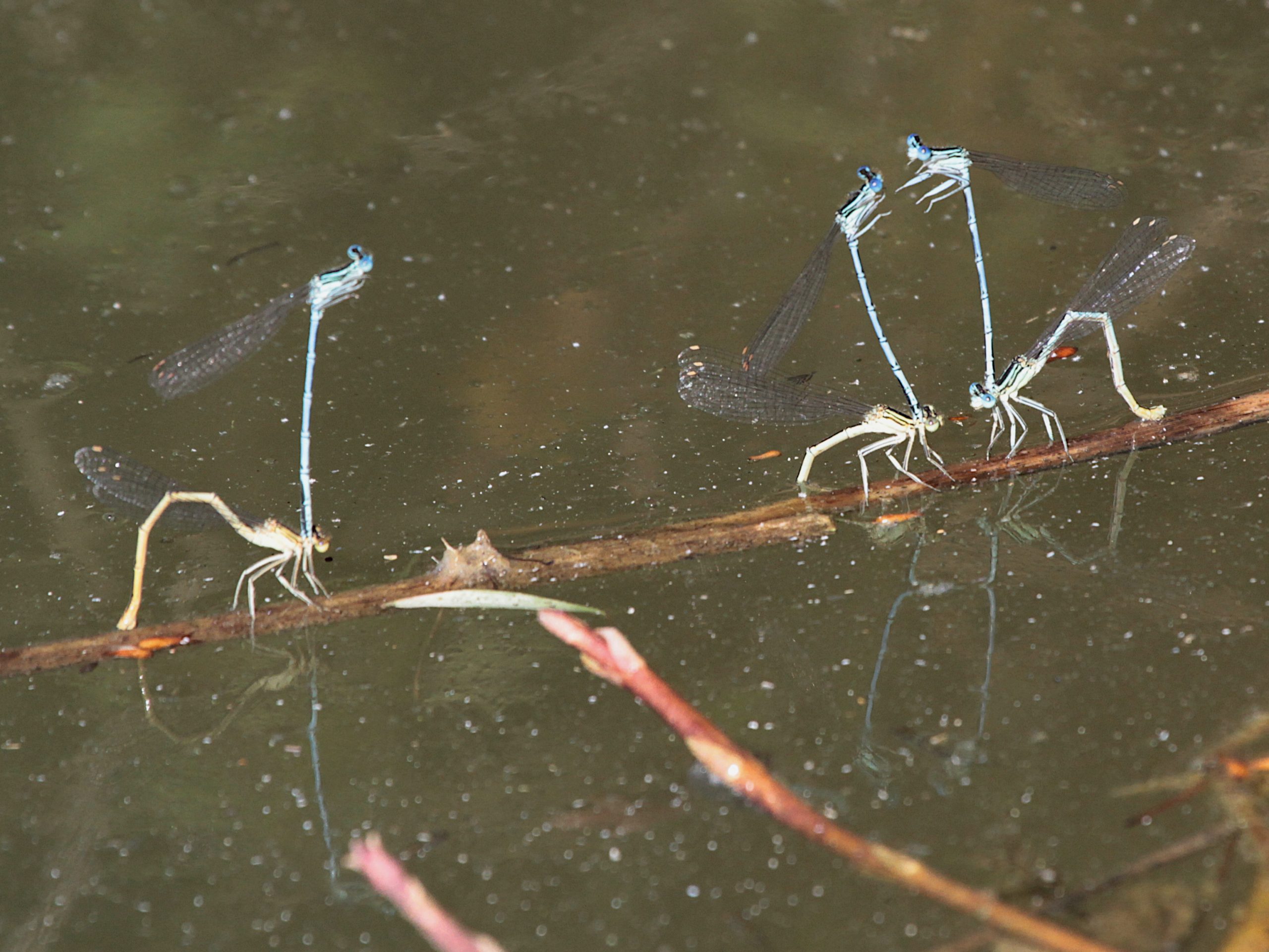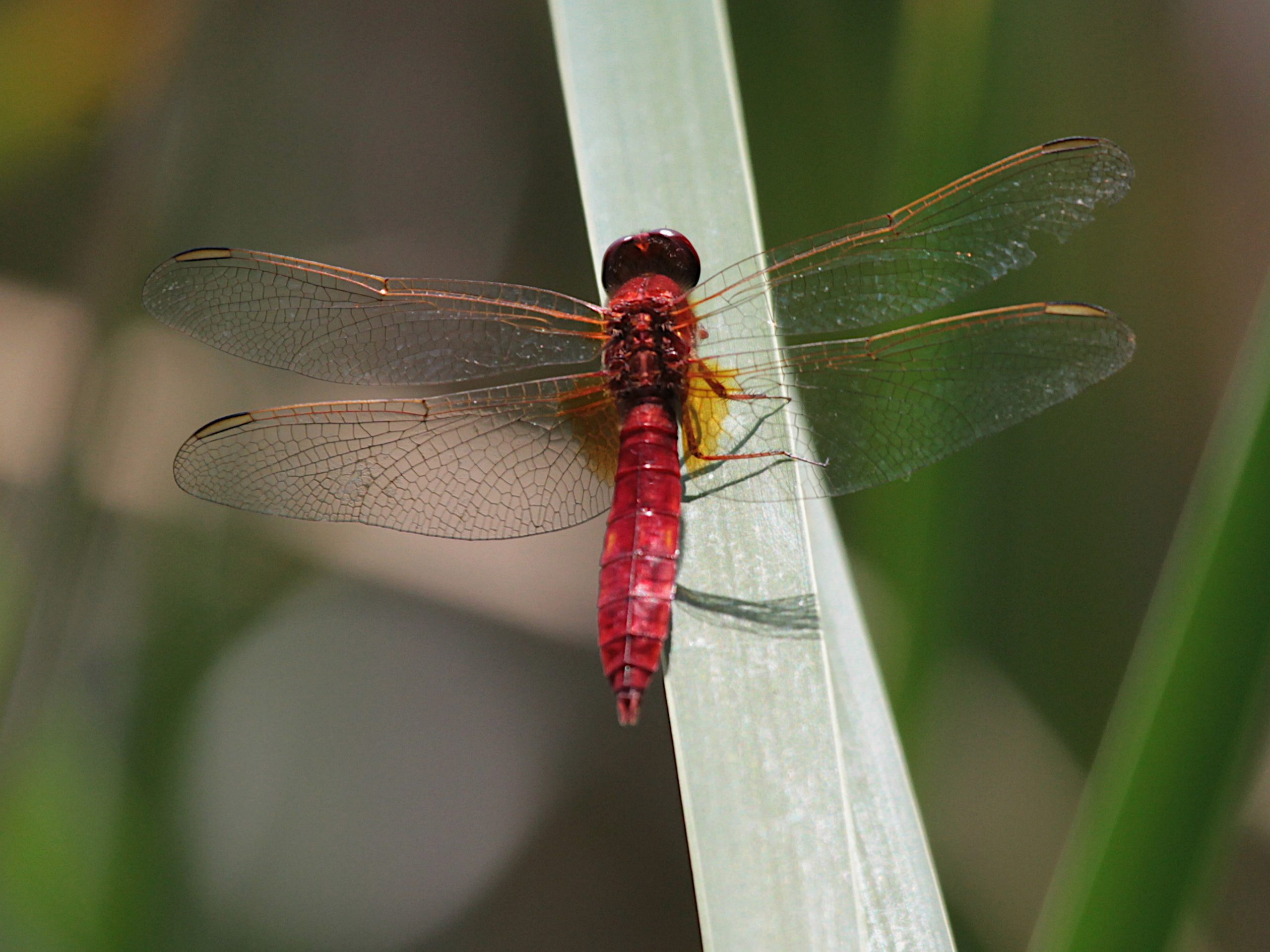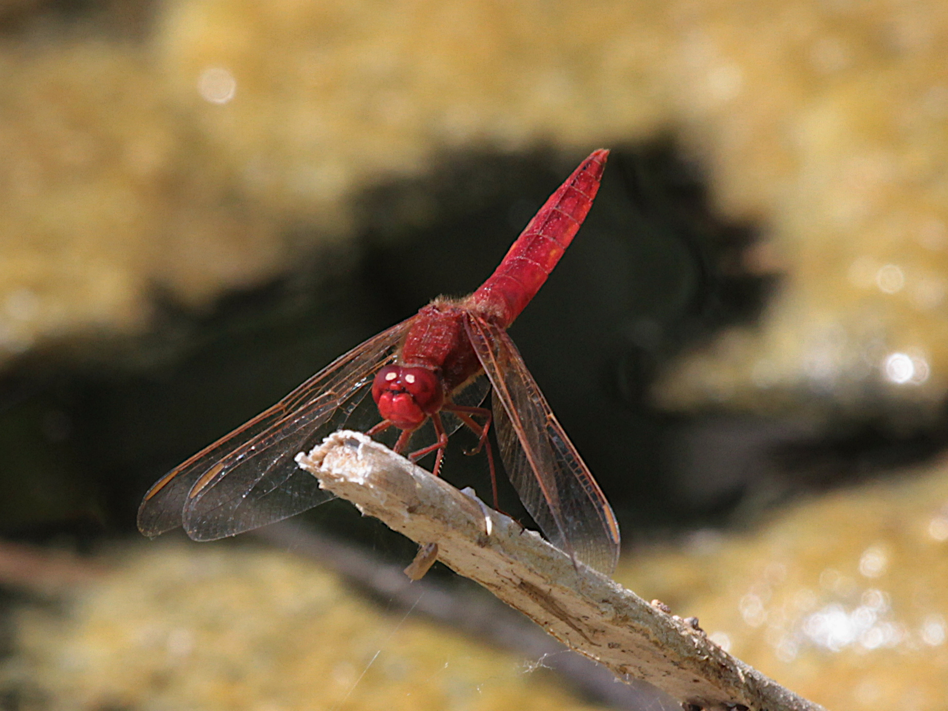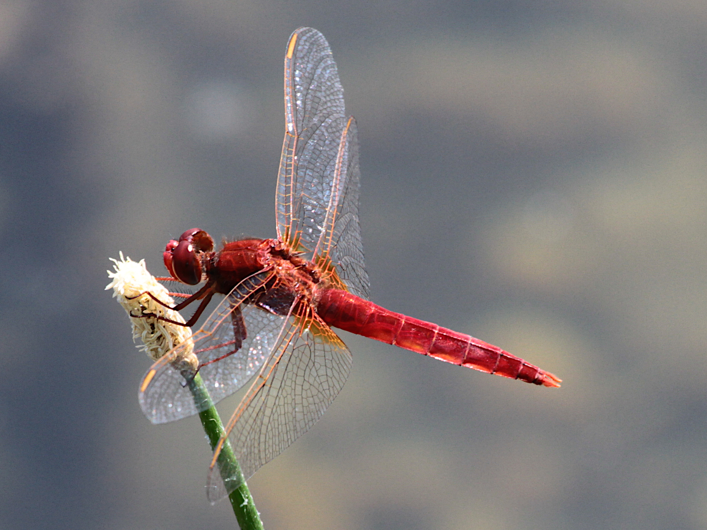 Et quelques libellules, pour terminer. L’Orthétrum brun (pour une fois, c’est la couleur de la femelle qui donne son nom à l’espèce) m’avait intrigué par deux petits machins noirs derrière les yeux. C’est grâce au gros plan que j’ai pu voir que cette libellule tient ses deux pattes avant repliées derrière la tête. Curieux !