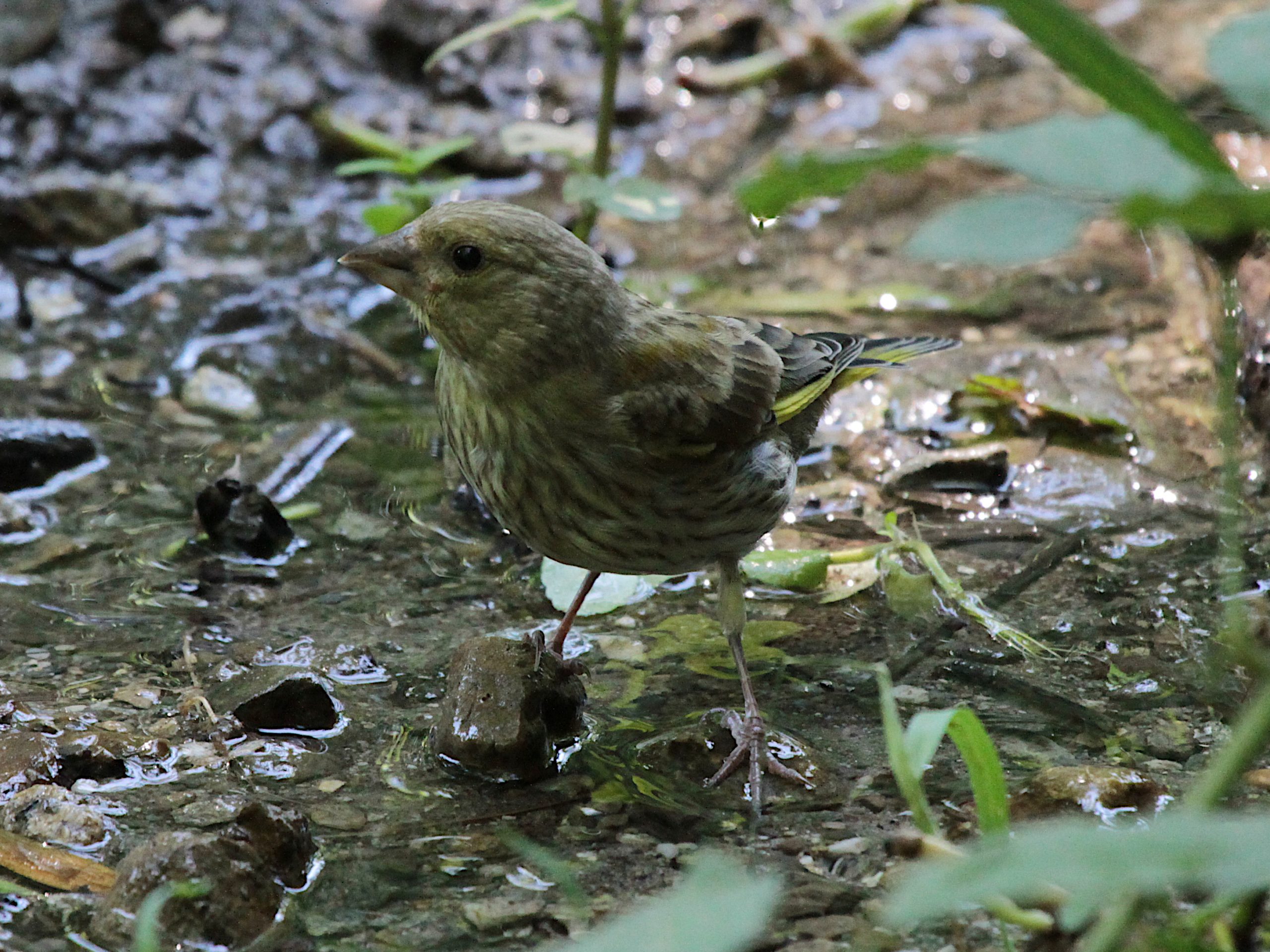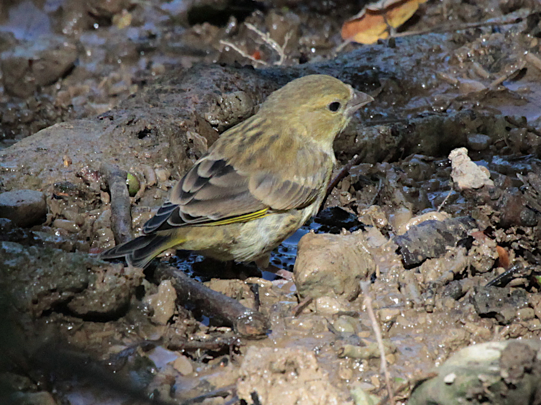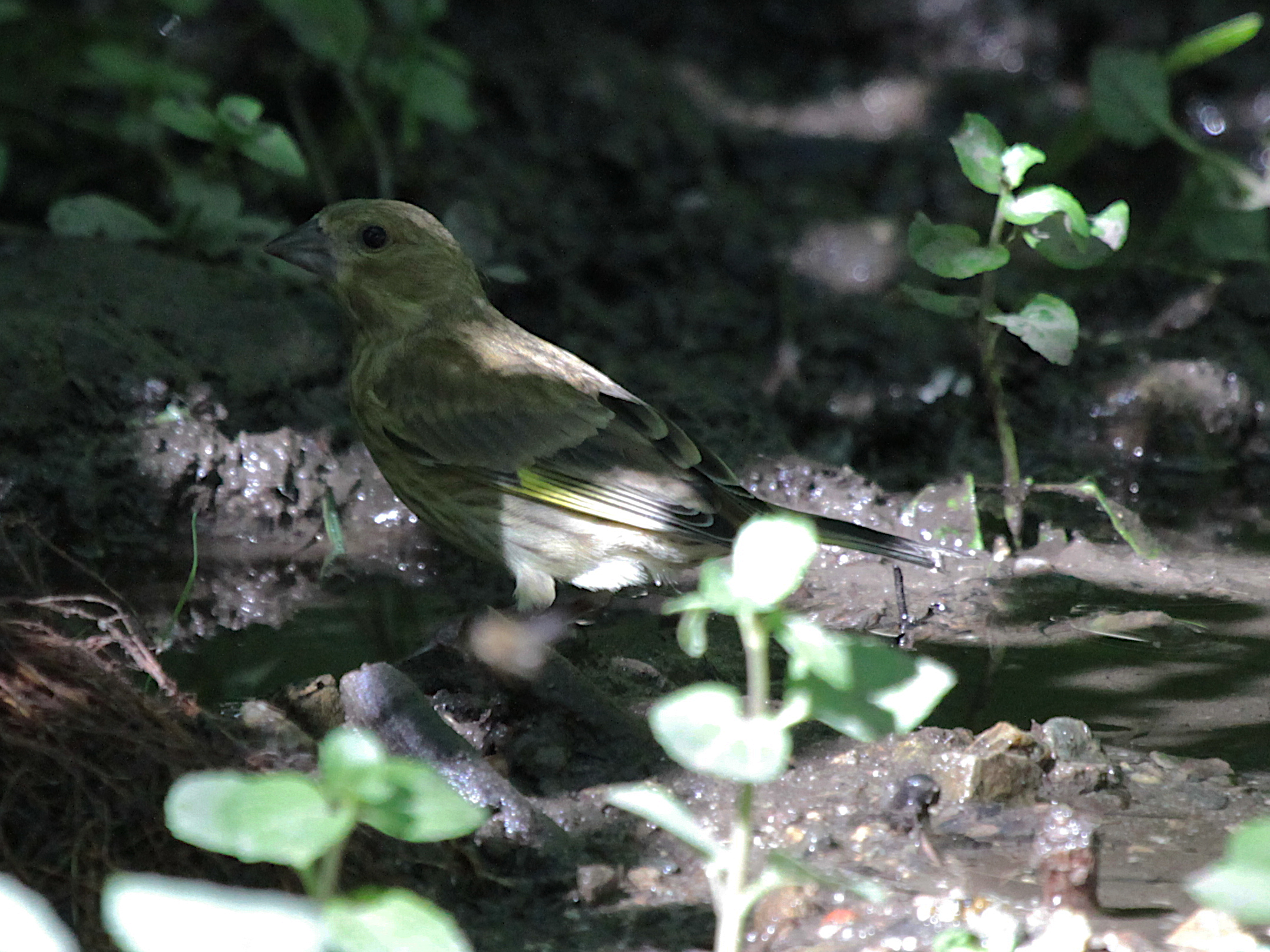 Le Verdier d’Europe a déjà ses plumes jaunes en bordure de l’aile mais il est encore très discret par rapport aux adultes