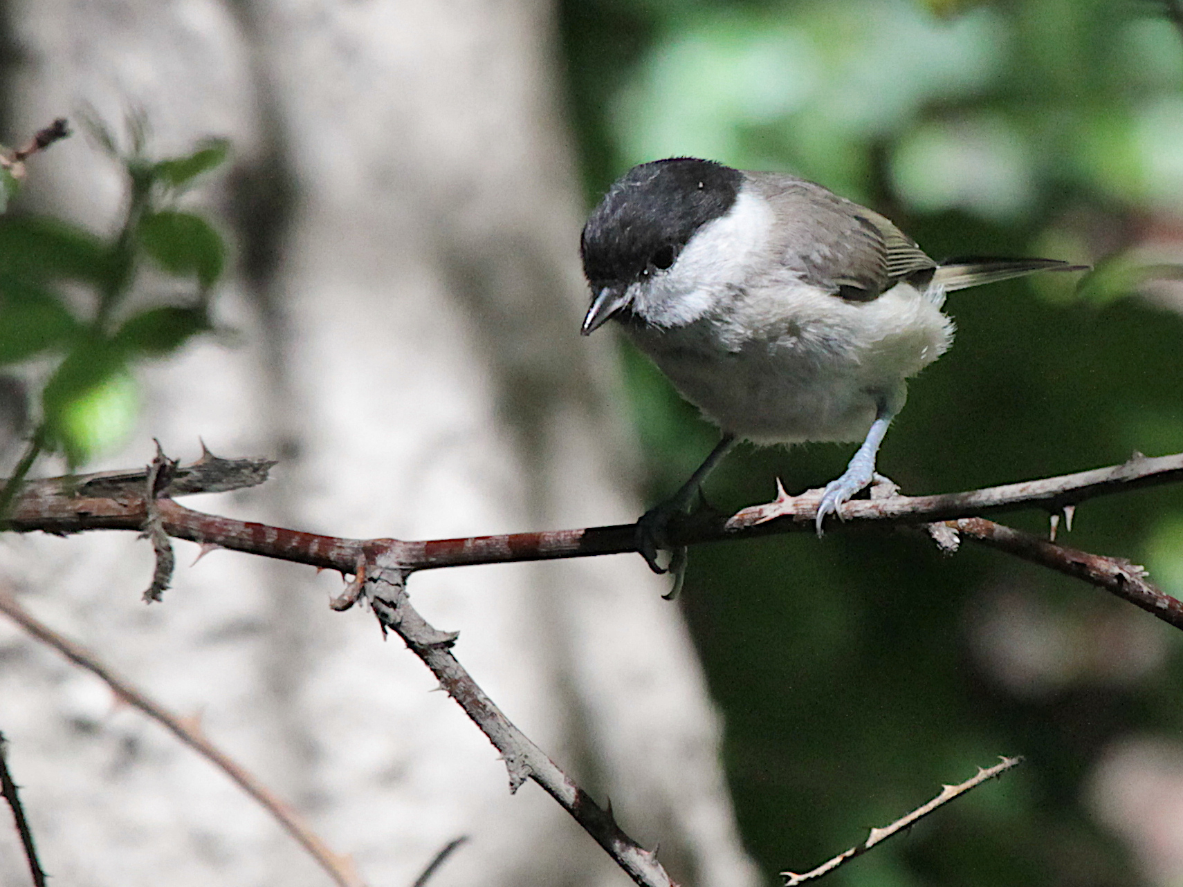 La Mésange nonnette, qui semble parasitée par des tiques près de l’oeil et sur l’arrière de la tête.