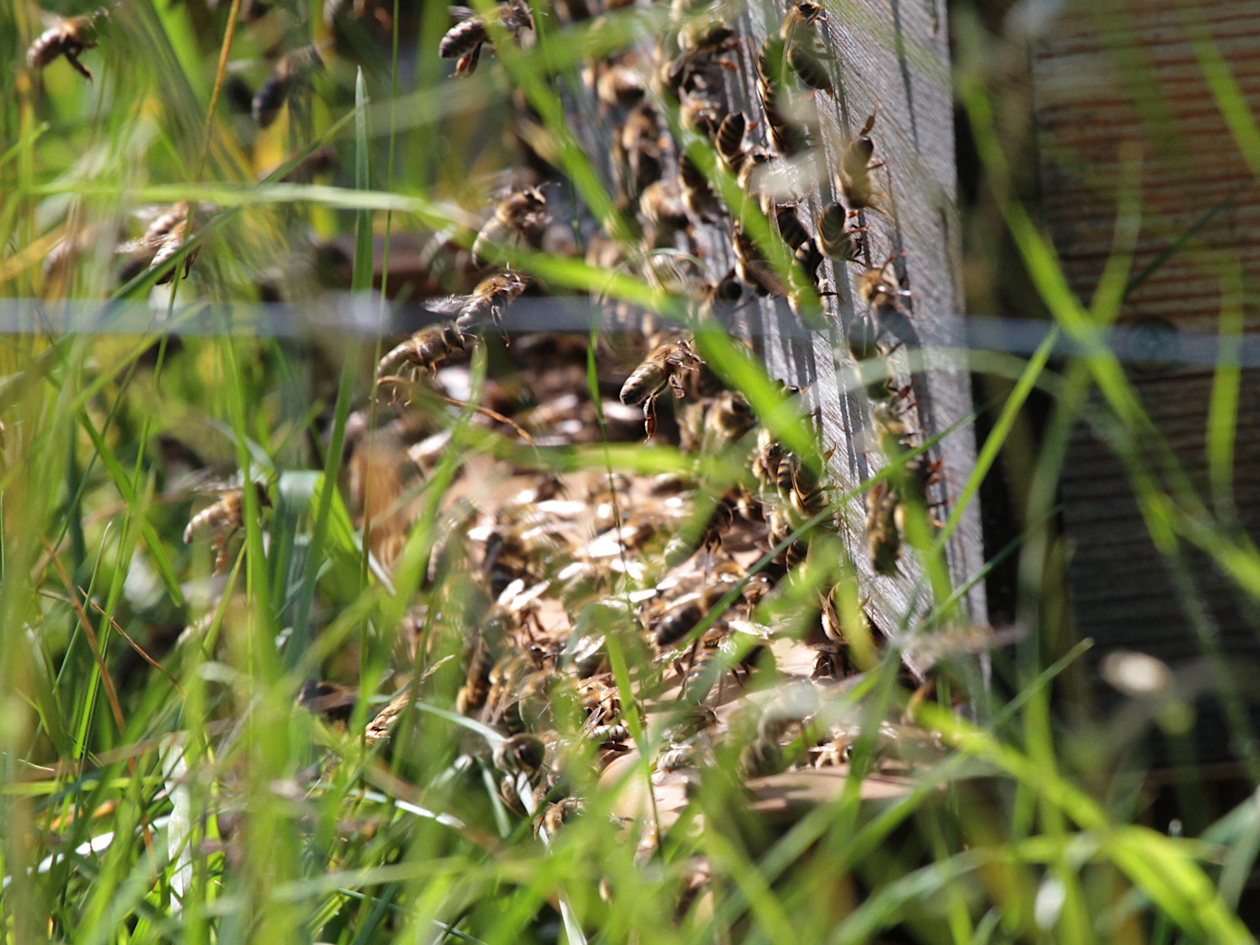 Abeilles qui, à la ruche, se préparaient à essaimer je crois, vu la danse effrénée.