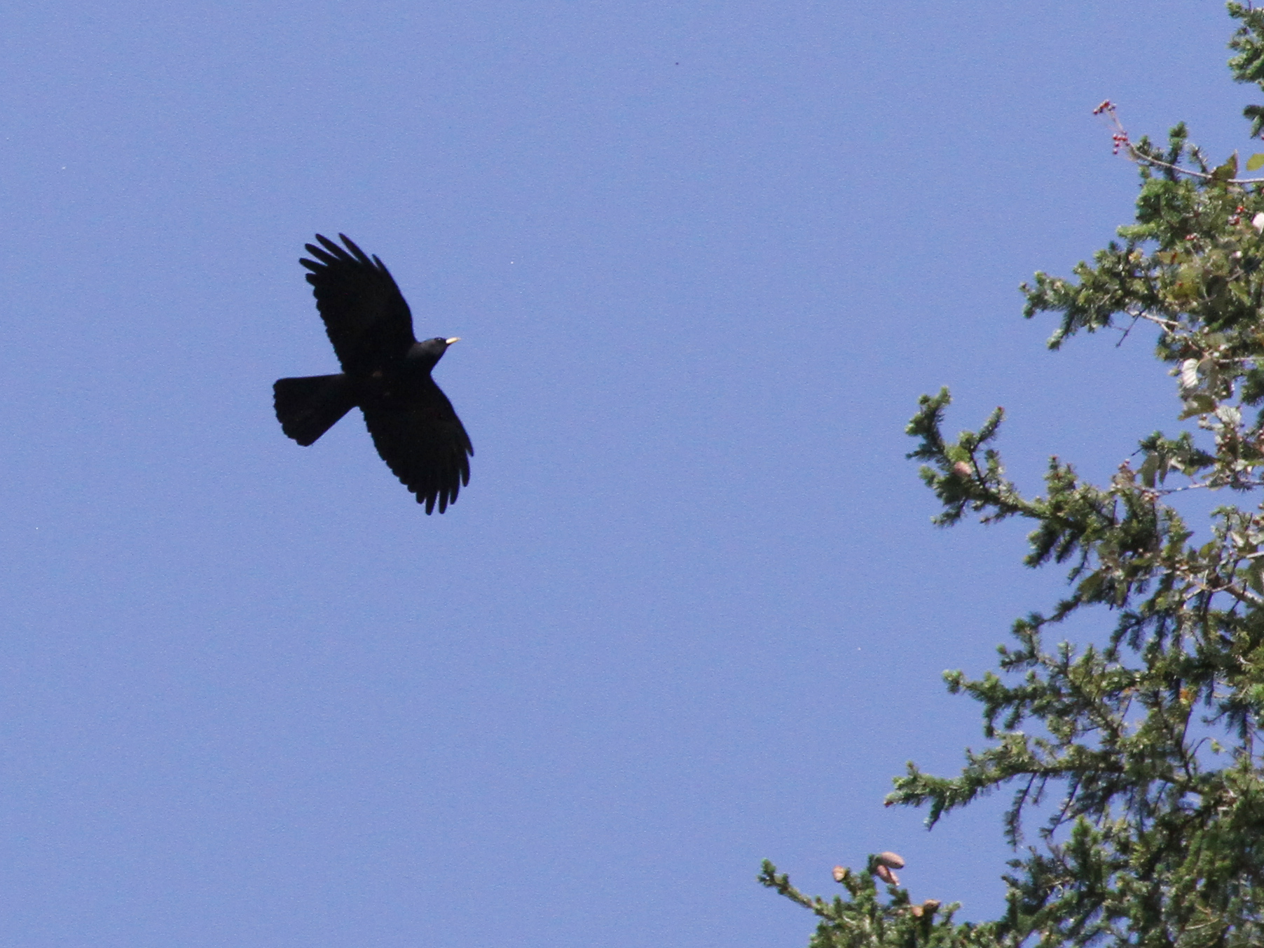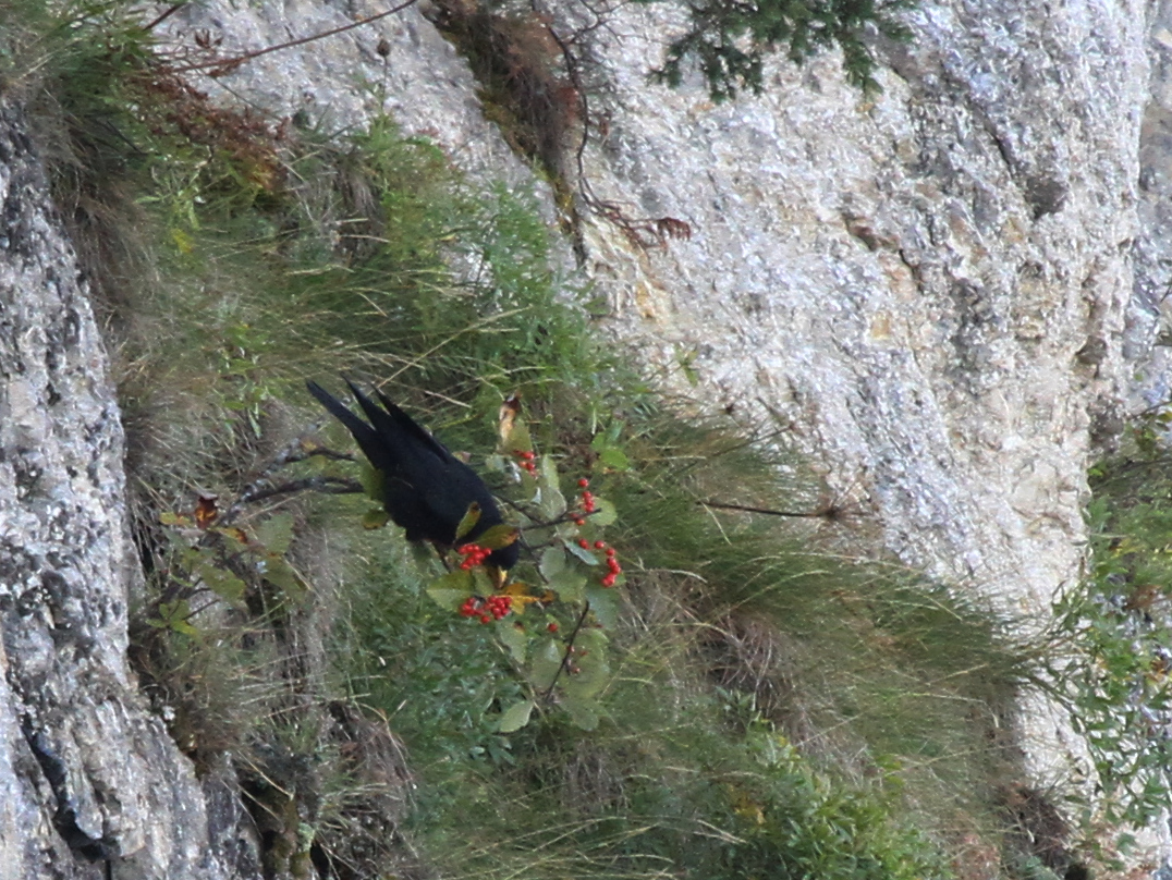 C’est la saison des noix, pour le régal des Corneilles noires. Encore faut-il ouvrir la coque. J’attendais pour voir si l’oiseau avait une technique particulière mais l’arrivée d’une voiture a mis fin à l’observation.