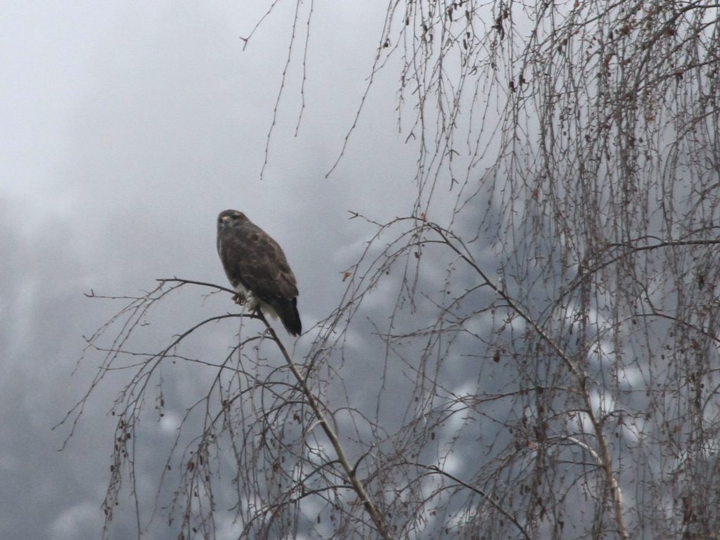 Voilà une Buse variable qui semble installée pour l’hiver. Je l’ai vue à plusieurs reprises dans le même coin. En réalité, il est impossible d’affirmer qu’il s’agit de la même, je n’ai vu aucun signe distinctif, c’est tout bonnement une hypothèse.