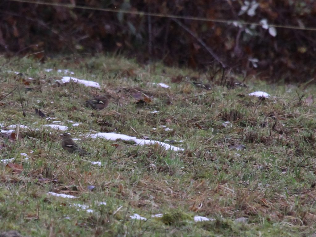Les Pinsons du Nord sont aussi présents en grandes bandes. Prenant l’envol à la moindre alerte, ils sont très mobiles et leur ventre blanc est assez joli à voir quand ils passent d’un arbre à l’autre.