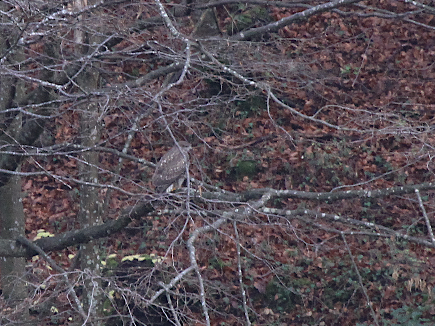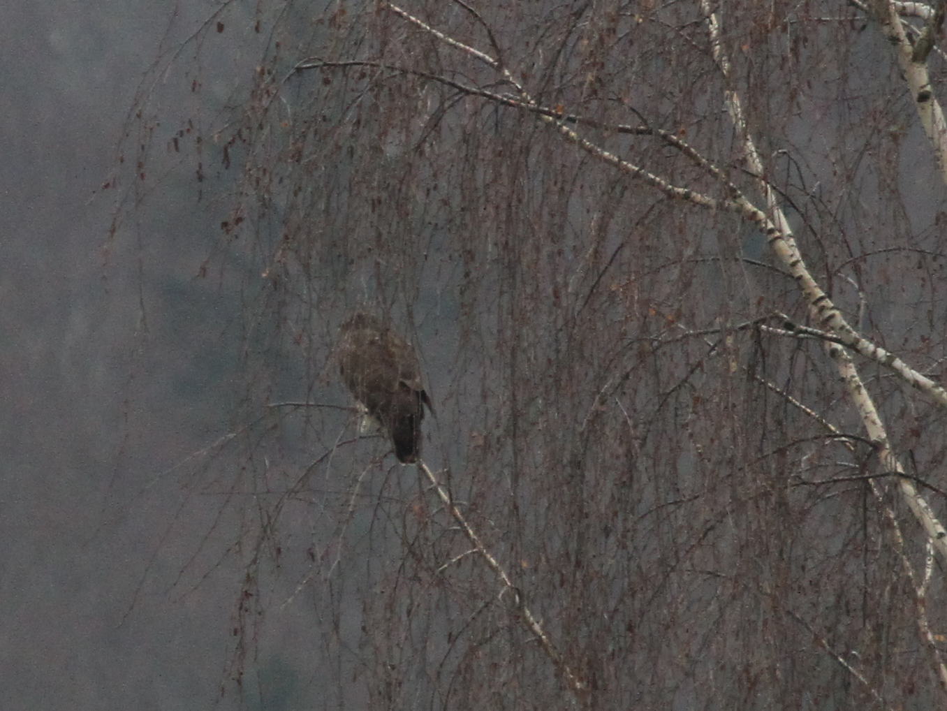 Voilà une Buse variable qui semble installée pour l’hiver. Je l’ai vue à plusieurs reprises dans le même coin. En réalité, il est impossible d’affirmer qu’il s’agit de la même, je n’ai vu aucun signe distinctif, c’est tout bonnement une hypothèse.