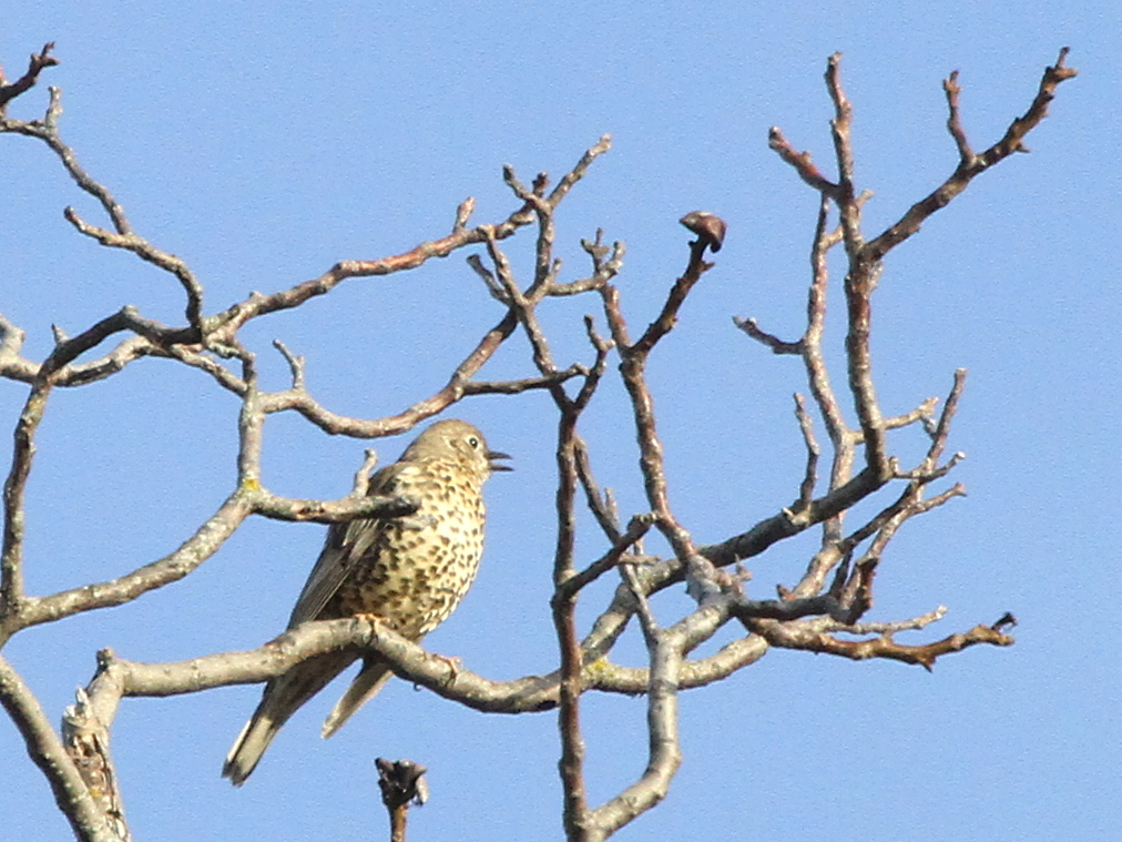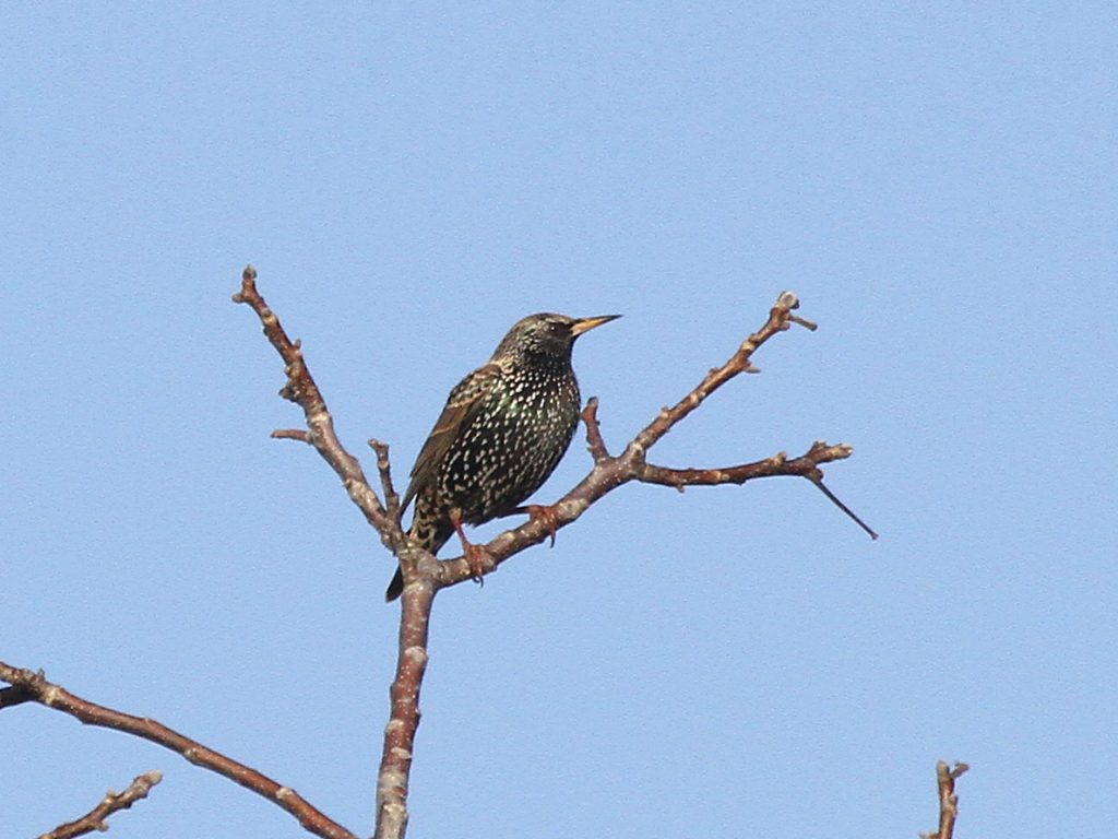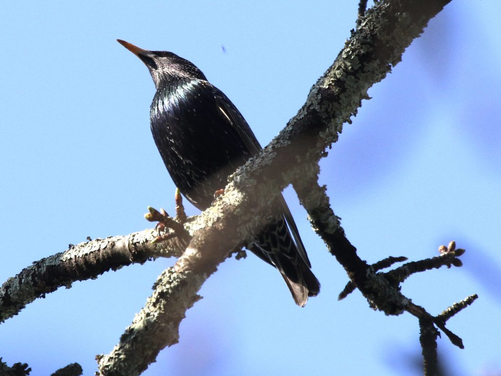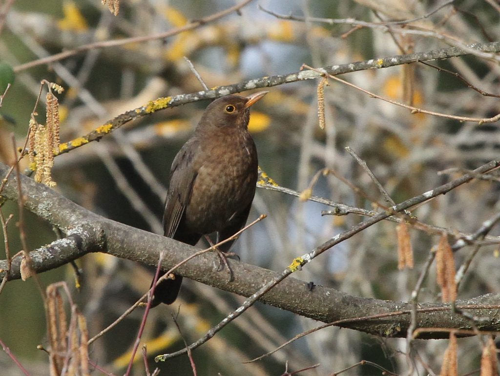 Le Merle noir est un oiseau très répandu mais aussi très farouche, qui sert de signal d’alarme aux autres oiseaux car il s’enfuit en criant fort. Celui-ci, dont la patte gauche demeure curieusement pliée au-dessus de la branche, est resté un bon moment à me surveiller avant de décider que je constituais un risque et de partir en donnant l’alerte.