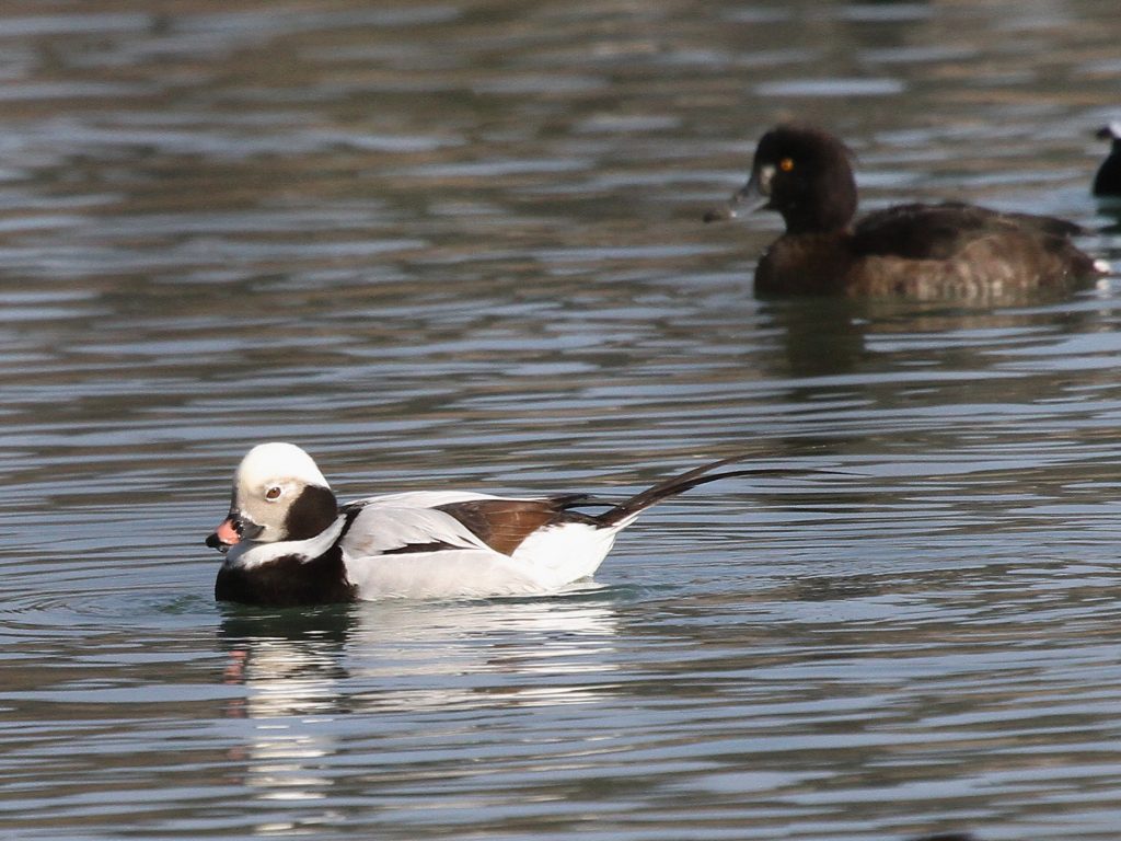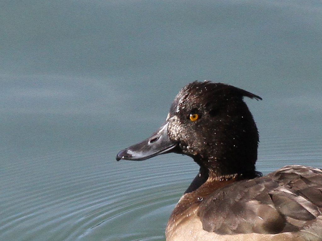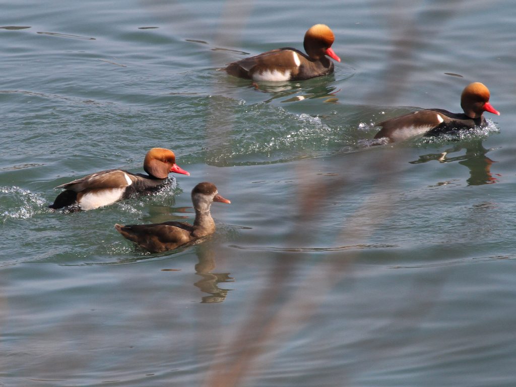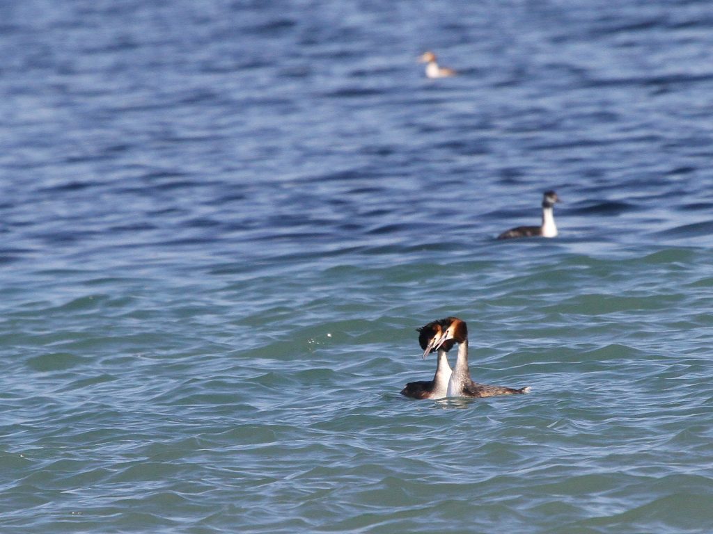 Du côté des Fuligules morillons, l’agitation autour des femelles est toujours intense. Les mâles ont enfin leur huppe bien développée, c’est certain qu’ainsi ils ont plus de chances de séduire une partenaire.