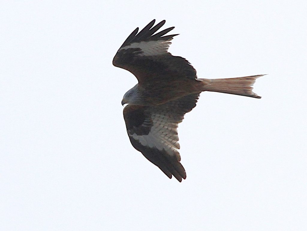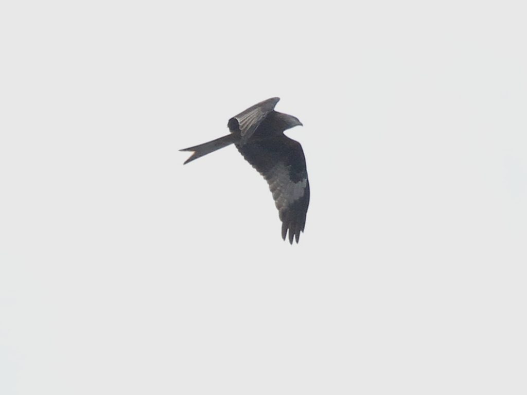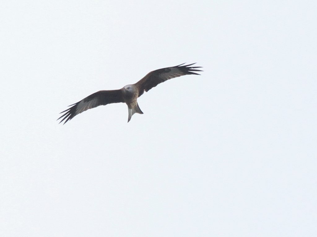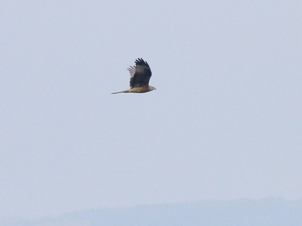 Bien entendu, les grands rapaces migrateurs continuent à passer dans le ciel. Voici le Milan royal.
