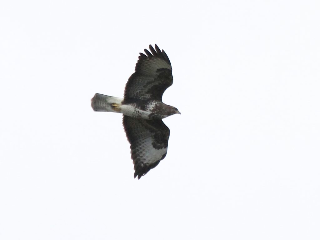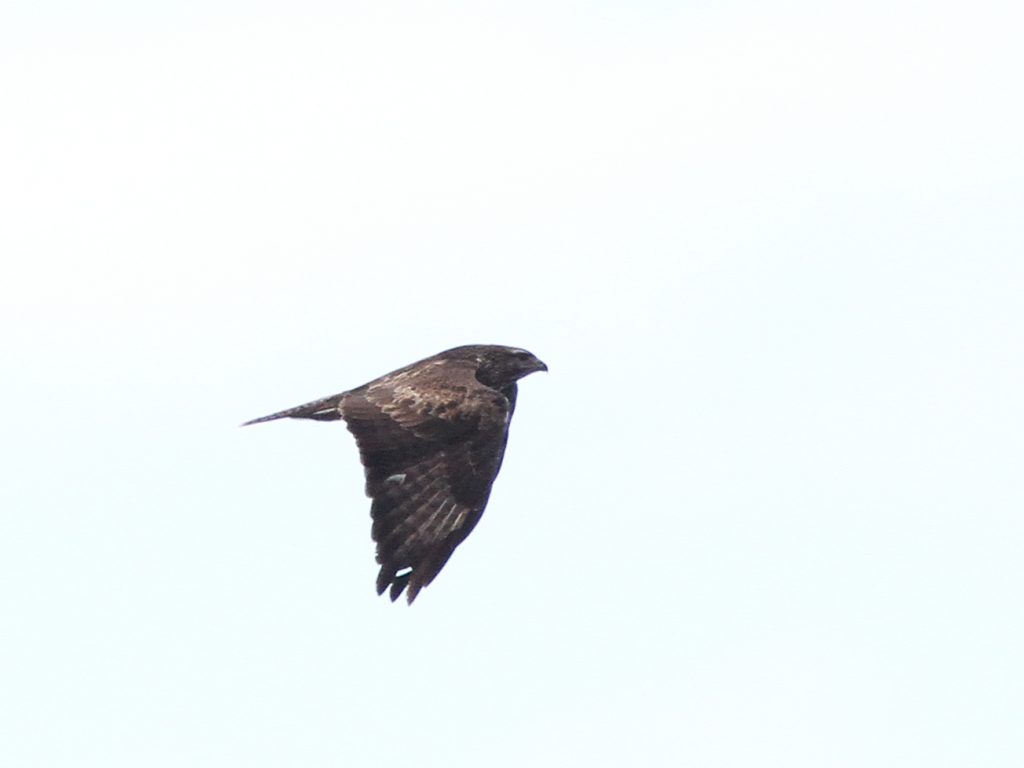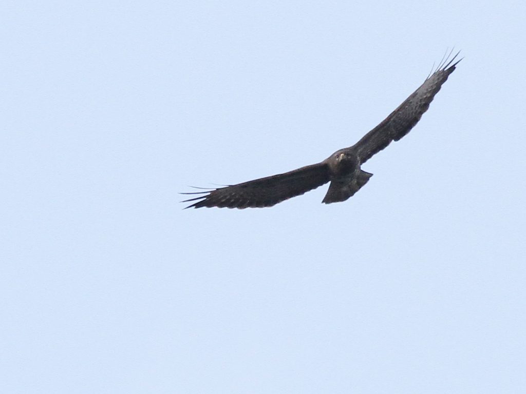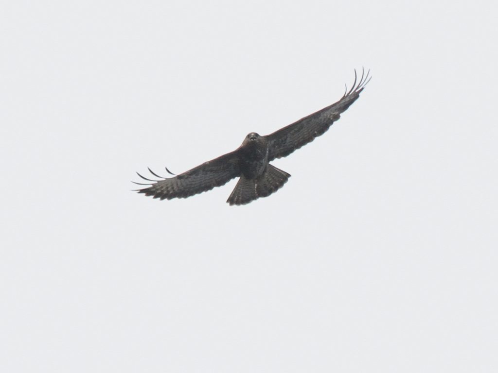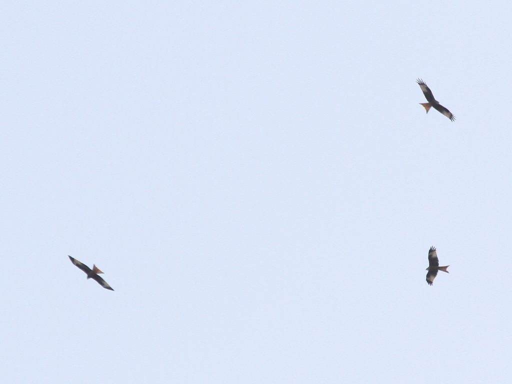 Bien entendu, les grands rapaces migrateurs continuent à passer dans le ciel. Voici le Milan royal.